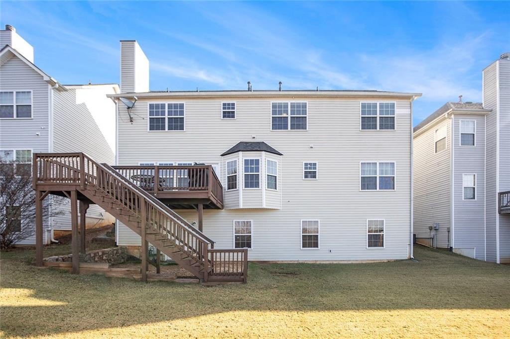 Welcome home to this lovely 2 story home in Villa Rica- 4 BR/2.5 BA- in Mirror Lake -a lake, swim, tennis and golf community. The home is in great condition: Newer (1 year) roof, water heater , 5 year old zoned HVAC system with 2 units each for AC and heat. The main level has no carpet. The bright kitchen with tiled floor, island, pantry, and breakfast area leads to deck. The deck will be great for enjoying the outdoors, and has steps leading to the back yard.
