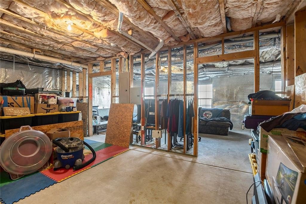 The large lower level can be finished into additional living space. Already equipped with HVAC and separate thermostat. There is a stubbed bath, separate breaker box and access to the partially-fenced back yard and gravel patio area.