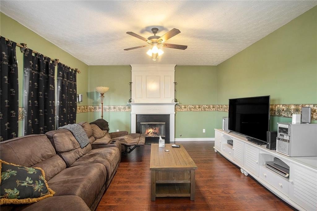 The large great room offers a warm and inviting atmosphere, anchored by a fireplace with gas logs (or can be wood burning) for cozy evenings. The living room, currently being used as an office, is spacious and leads to the formal dining room featuring a trey ceiling. A half bath completes the main level.