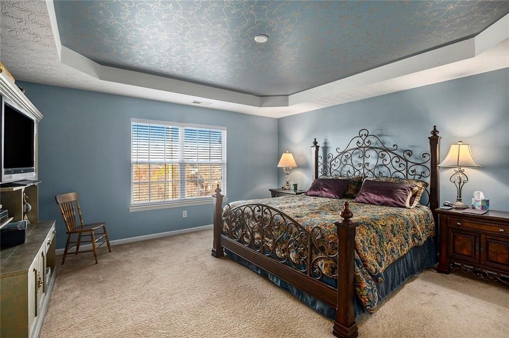 The primary bedroom, located on the upper level, is a sanctuary of tranquility, featuring a trey ceiling that adds an element of architectural interest and an ensuite bathroom that offers soaking tub, dual vanities, tile shower and new LVP flooring. There are three additional BR on the second level and a hall bath with dual vanities.