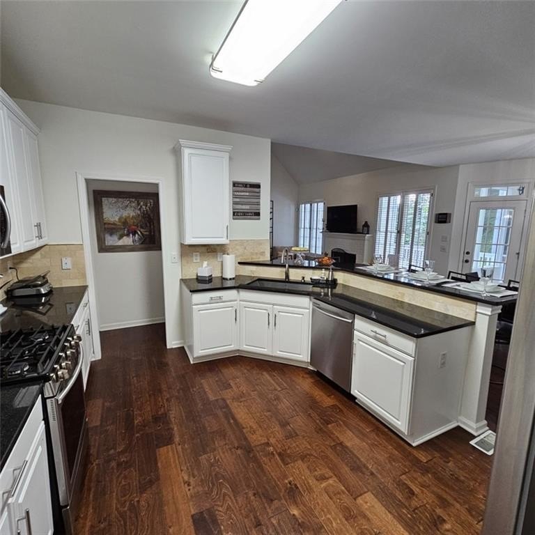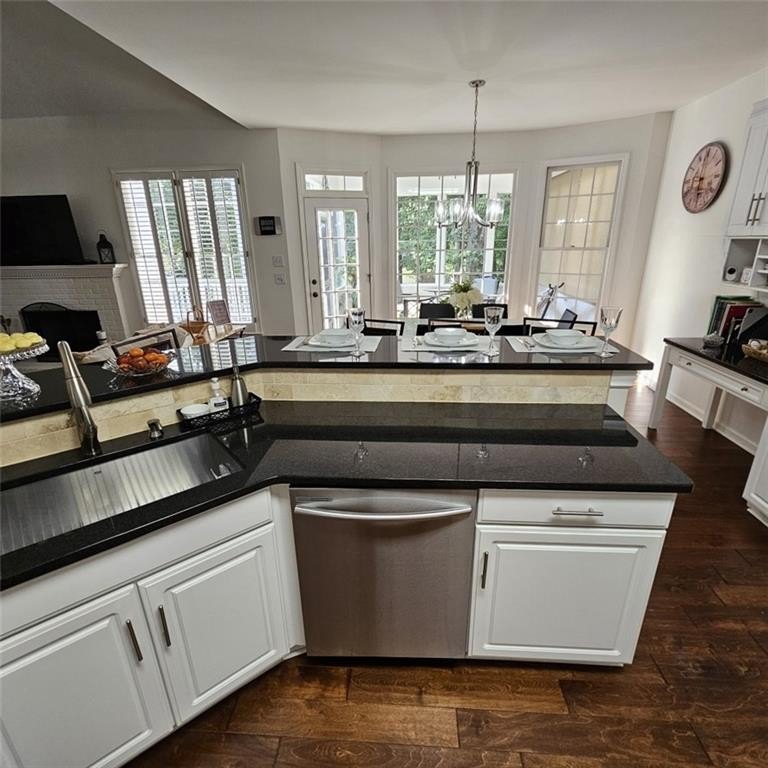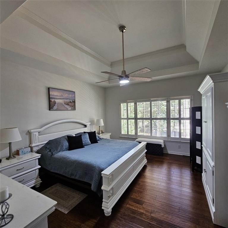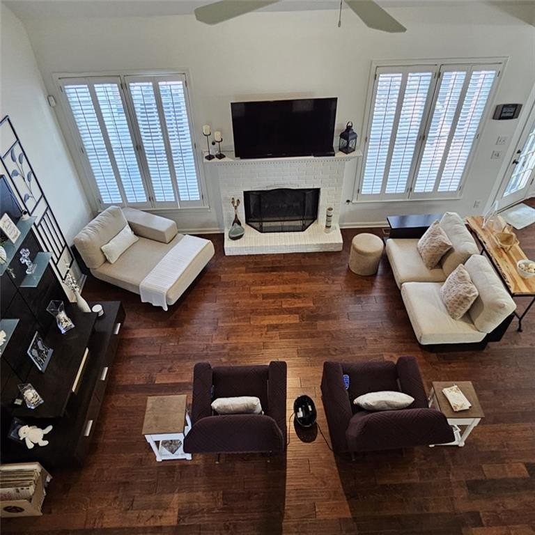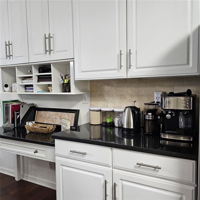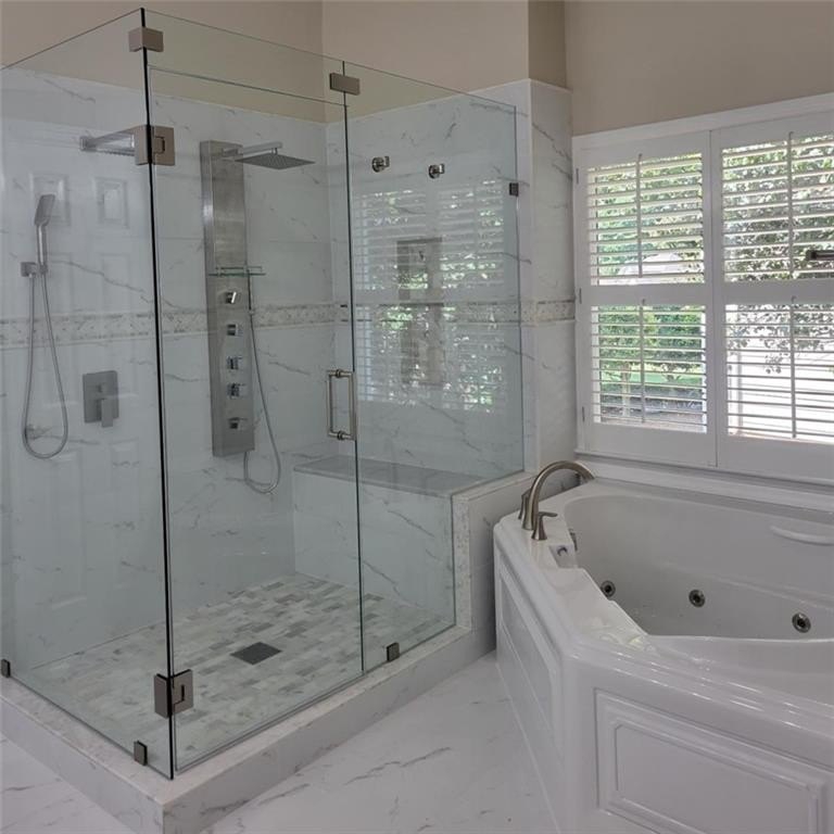 Inside, the master suite on the main level features a custom walk-in closet and a spa-like bath with double vanities, an oversized double shower, and a jetted hot tub. Upstairs, you’ll find four additional bedrooms and a full bath — perfect for family and guests or a gym. The inviting main floor includes a separate living room with a cozy gas fireplace, a formal dining room, and a den/office with custom built-ins. The updated kitchen offers stainless steel appliances, granite countertops, a gas range, [electric connection available], coffee bar, a writers desk, and plantation shutters with an open view of the family room and the spacious back deck.
