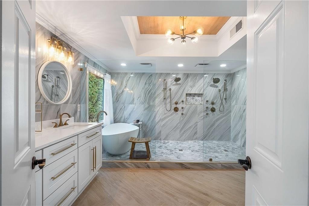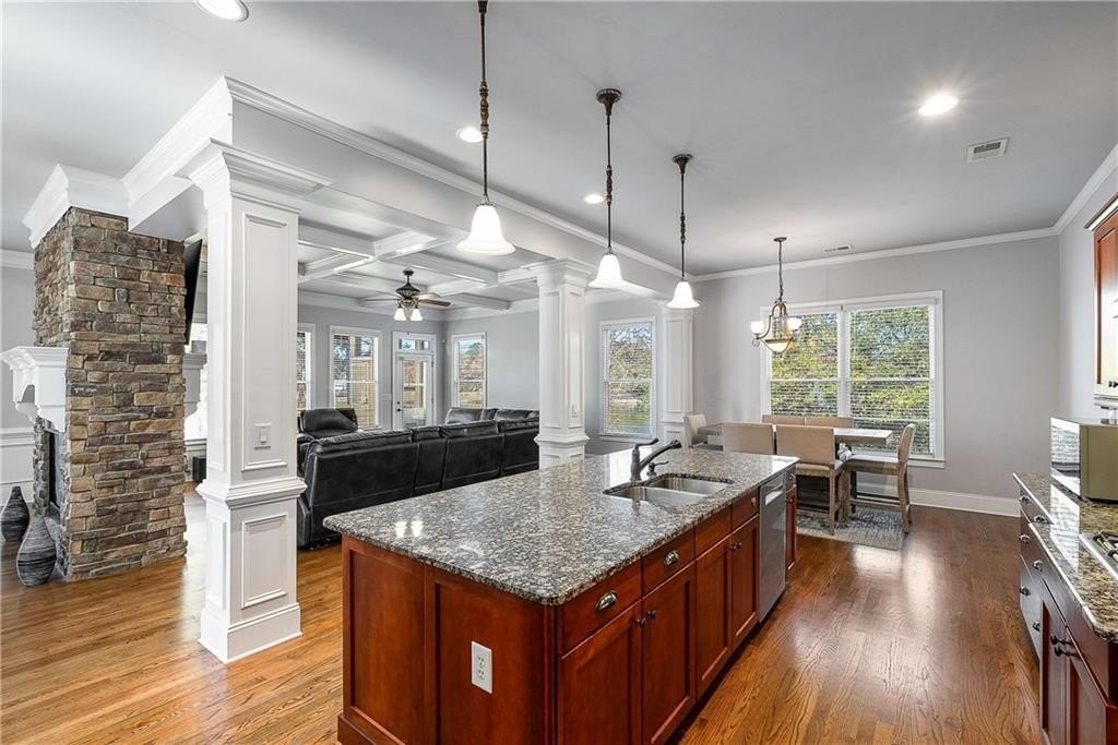 Gorgeous Craftsman on the Lake! Long driveway with plenty of parking and a welcoming front porch. Inside features a wide foyer with a flex/office space and guest bedroom with full bath. Separate dining room with double-sided fireplace opens to the spacious family room filled with natural light. Enjoy lake views from the screened-in porch! Chef’s kitchen with large island, stainless steel appliances, pantry, and tons of cabinet space. Upstairs offers an open loft leading to the front terrace, two bedrooms with private baths, and a stunning owner’s suite with fireplace, sitting area, screened porch, spa bath, and custom closet. Finished basement includes a full apartment with 2 bedrooms, kitchen, family room, bath, laundry, and storage. 3-car garage and outdoor fireplace area—perfect for entertaining. This home truly has it all!