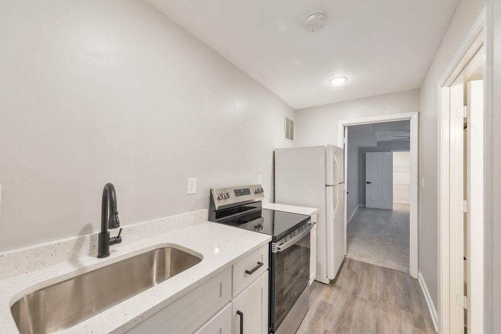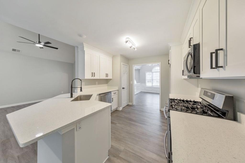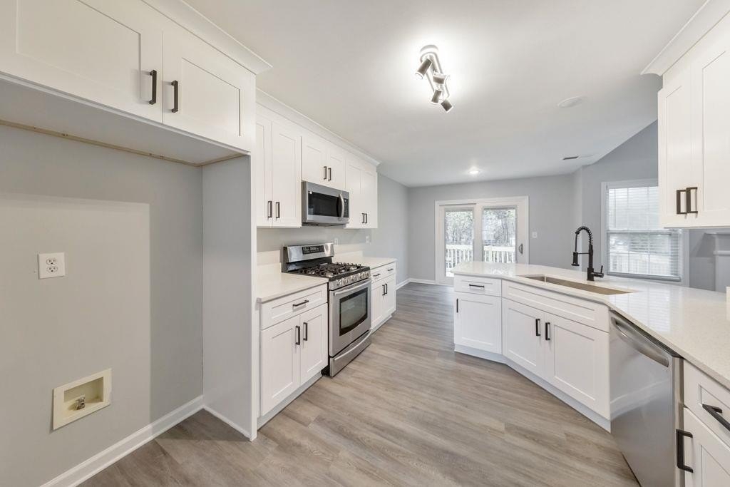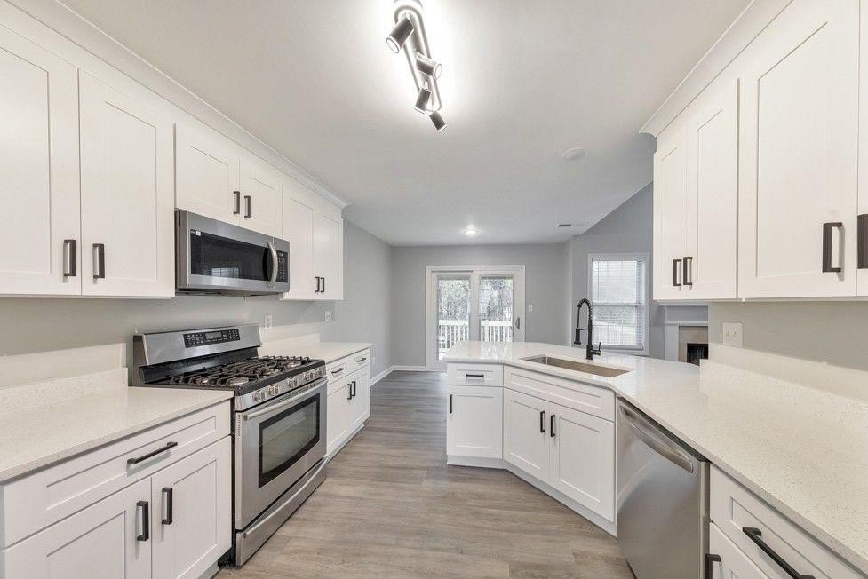 Discover the perfect family haven in the heart of Marietta! This beautifully renovated 5 bed / 3 bath home blends modern upgrades with timeless charm. Fresh interior and exterior paint, new LVP flooring, plush new carpet, and new exterior doors create a bright, refreshed, and inviting atmosphere throughout. Step into the welcoming foyer that leads to a formal dining room graced with a chic modern light fixture and a fireside living room with soaring ceilings, perfect for gatherings and everyday living. The newly renovated kitchen is a chef’s delight, featuring stainless steel appliances, quartz countertops, crisp white cabinetry, a sunny breakfast area, and convenient washer and dryer hookups. The primary suite on the main level is a serene retreat, boasting tray ceilings and a luxurious ensuite with a double vanity with modern mirrors, a soaking tub, a separate shower, and a spacious walk-in closet. Two additional main-level bedrooms share a beautifully updated bathroom. The finished basement offers flexible space for extended family, guests, or potential rental income, complete with its own kitchen, two bedrooms, a renovated bathroom, laundry room, a cozy living room, and abundant storage. Outside, the fenced and level backyard, along with the new deck, provides the perfect space for kids and pets. Don’t miss the opportunity to make this exceptional property your own!