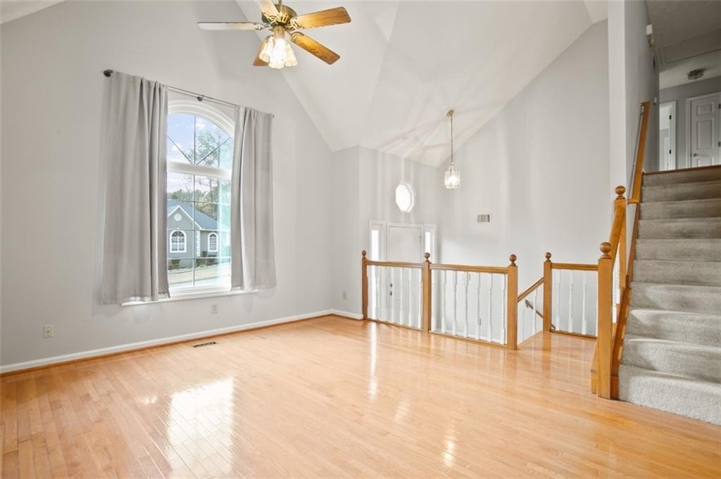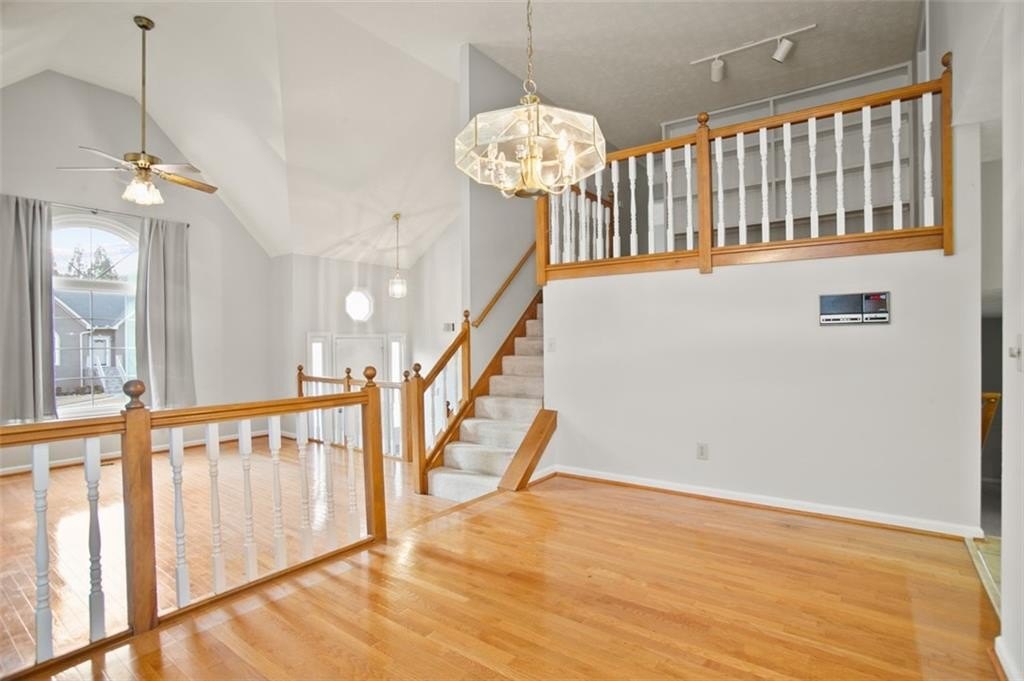 If you’re searching for a spacious home to accommodate a growing family, your search ends here. Step into this well-maintained split-foyer home boasting over 3,000 sq. ft. of living space. Upstairs, you’ll find a stunning great room with hardwood floors, a soaring cathedral ceiling, and a fireplace with gas logs and a gas starter. Just beyond the great room is a raised dining area with hardwood floors and an open view of the living space below.