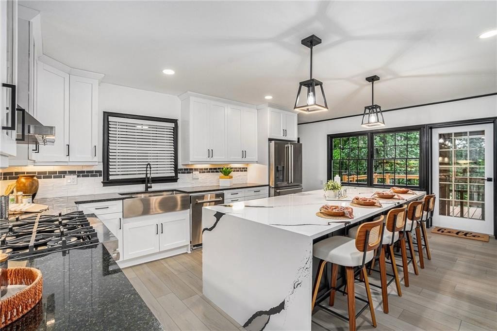 MOVE IN LAKE RICH! INSTANT $110,300 IN YOUR POCKET! Build wealth. Live the lake life. This isn’t just a home — it’s a lifestyle upgrade. Priced below market and appraised at $888K, you walk in with $110,300 in instant equity. Plus, the seller is covering $5,000 in closing costs, making this one of Gainesville’s smartest buys. Located just minutes from Lake Lanier, Olympic Park, and downtown Gainesville’s dining, shopping, and entertainment, this sexy modern renovation blends high-end design with everyday comfort: Open concept living with statement fireplace and feature wall. Chef’s kitchen with quartz counters, subway tile, glass-front cabinets, and premium stainless appliances (yes, even a French 4-door fridge!) Oversized primary suite with spa-inspired bath: marble-tiled shower, soaking tub, and custom walk-in closet. Finished basement with second kitchen and full bath = perfect for guests or rental potential