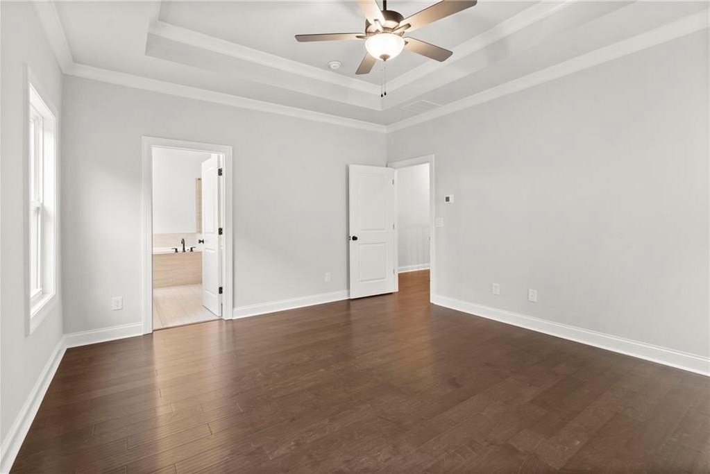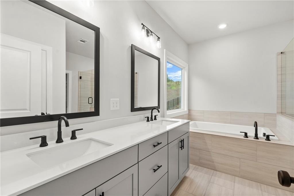Upstairs, the spacious owner’s suite boasts a 10-foot tray ceiling and a luxurious en-suite bathroom for ultimate comfort and privacy. Situated just 1.5 miles from Interstate 400, this home offers quick access to the new Cumming City Center, where you'll find charming boutiques and unique dining options. Additionally, the proximity to Lake Lanier provides abundant opportunities for outdoor activities and enjoyment. With its inviting farmhouse-style exterior and carefully crafted interior, this home combines modern conveniences with the peacefulness of mountain living.
