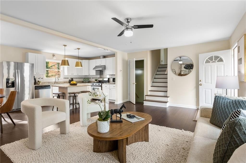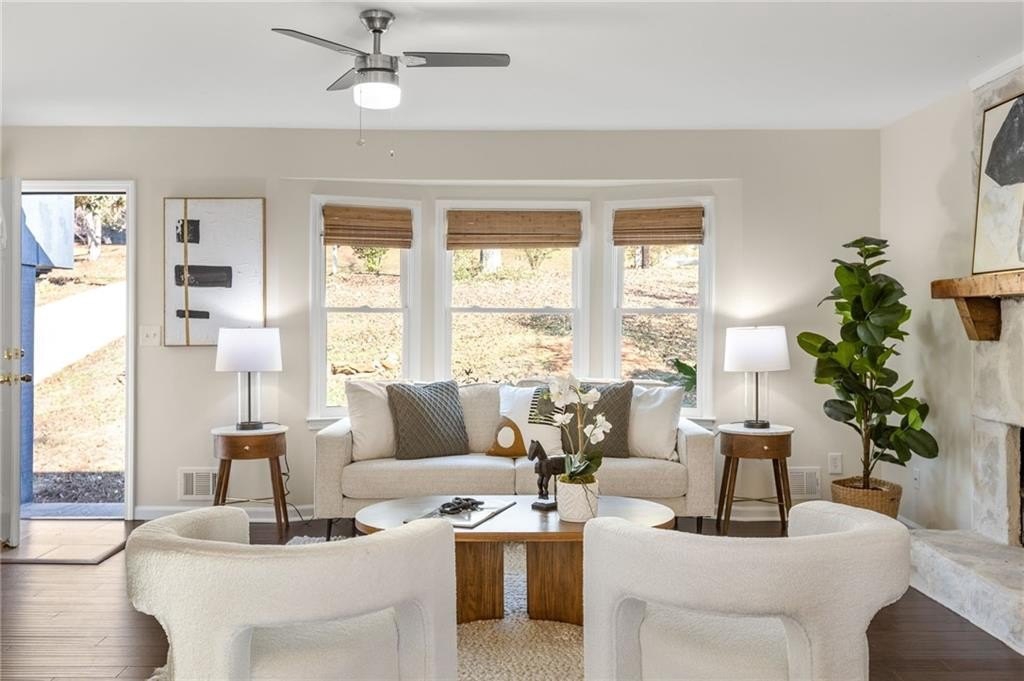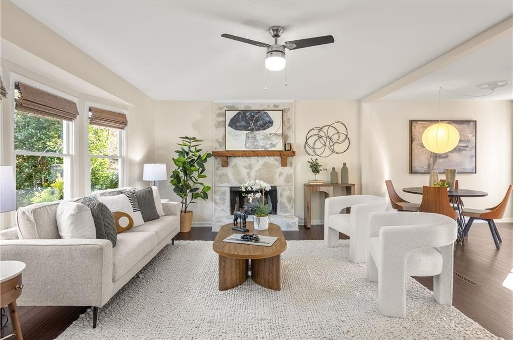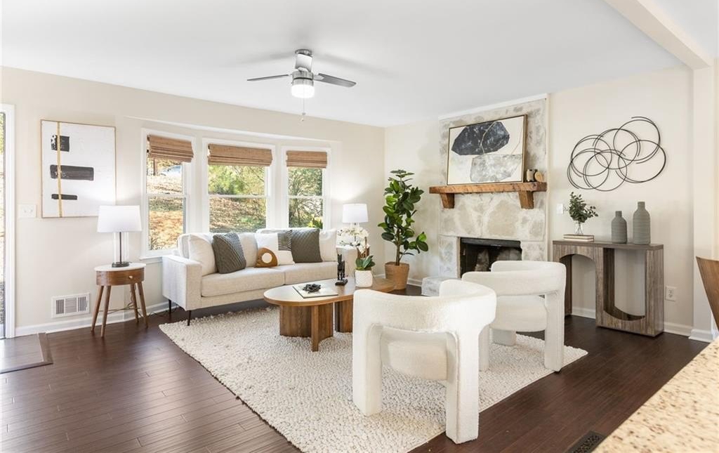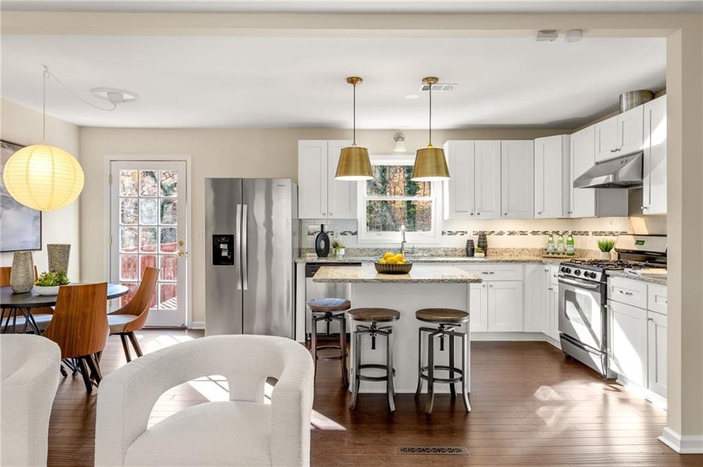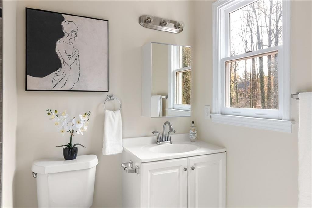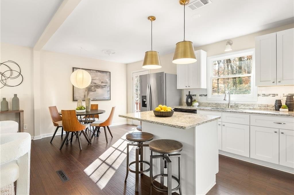 Updated and move-in ready split level Near Downtown Duluth! A bright, open floorplan, Freshly Repainted with beautiful fixtures. Updated kitchen with granite counters, white cabinets, stainless steel appliances. Kitchen sink overlooking the large, flat backyard. Updated Double-Pane Windows throughout. Natural light fills the living room accentuating the fireplace and large wooden mantel. Beautiful wood floors that will surely impress on the main level. Upstairs discover a large primary bedroom en-suite with two closets and a tiled shower floor to ceiling. Two additional bedrooms share a hall bathroom featuring a shower and soaking tub. Downstairs there is a huge bonus room, spacious, light-filled laundry room, and an oversized 1-car garage with plenty of space for storage. Step outside onto the huge back deck perfect for entertaining and enjoying the peaceful outdoors. A huge backyard already primed with a few raised beds for your garden, and a mature front landscape. This charming turnkey home is ready for you!