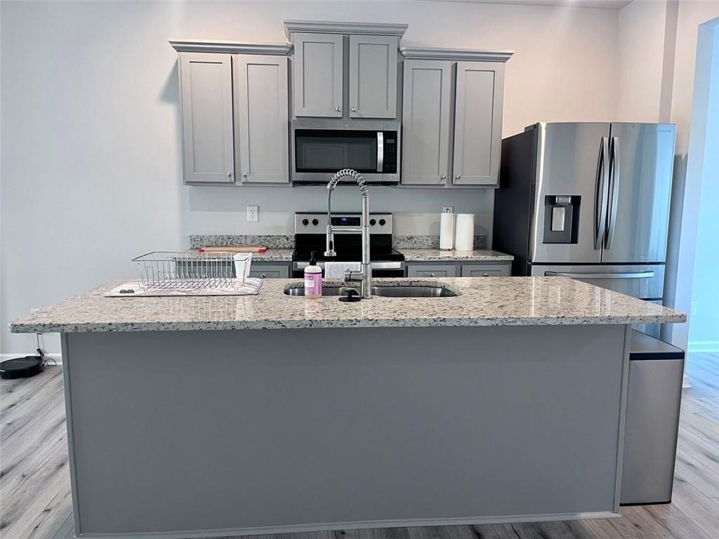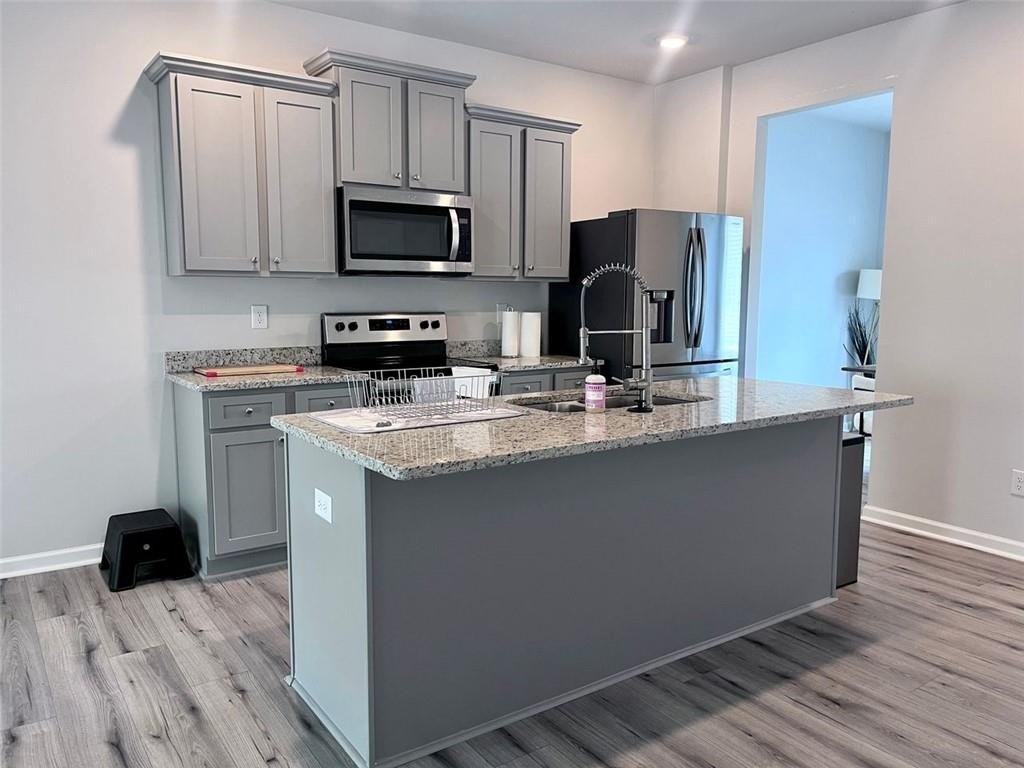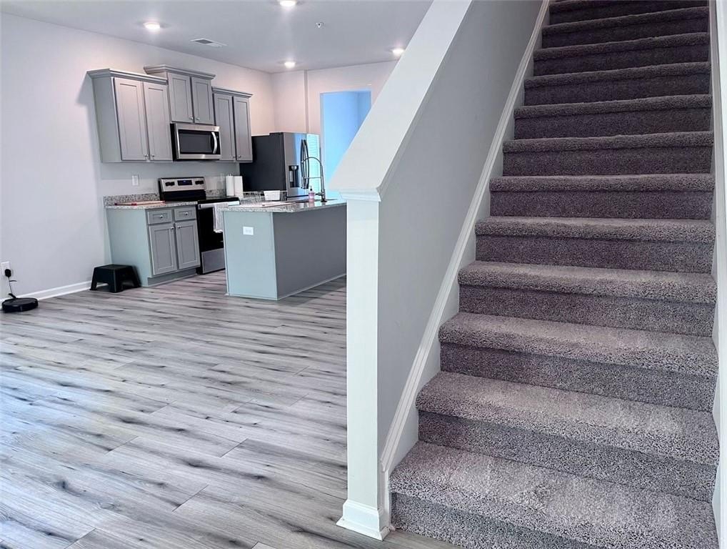 Welcome to 6087 Mallory Ridge - an immaculate, like-new 3-bedroom and 2.5 bath rental townhome offering modern comfort, style, and functionality. Built in 2023, this pristine property has been meticulously maintained and is truly move-in ready. Step inside to an open and airy floor plan filled with natural light and upscale finishes, including gleaming hardwood floors throughout the main level. At the front of the home, a versatile flex room awaits—perfect for a home office, creative studio, formal dining room, or whatever fits your lifestyle. The heart of the home is the stunning chef's kitchen, featuring granite countertops, sleek gray cabinetry, and a generous center island with an undermount sink - ideal for meal prep or entertaining. The kitchen flows effortlessly into a spacious family room with a cozy fireplace, creating a welcoming space to relax or gather with loved ones. Upstairs, the expansive owner’s suite offers a peaceful retreat with ample space and privacy. The spa-inspired en-suite bath features a large walk-in shower, dual granite-topped vanities, and plenty of storage. Two additional bedrooms and a stylish hall bath with granite countertops complete the upper level. Enjoy a private backyard—great for quiet mornings or weekend barbecues-and take advantage of the home’s unbeatable South Fulton location, with easy access to major highways, shopping, dining, and Hartsfield-Jackson Airport. If you're searching for a rental that combines modern design, convenience, and spotless condition, look no further.