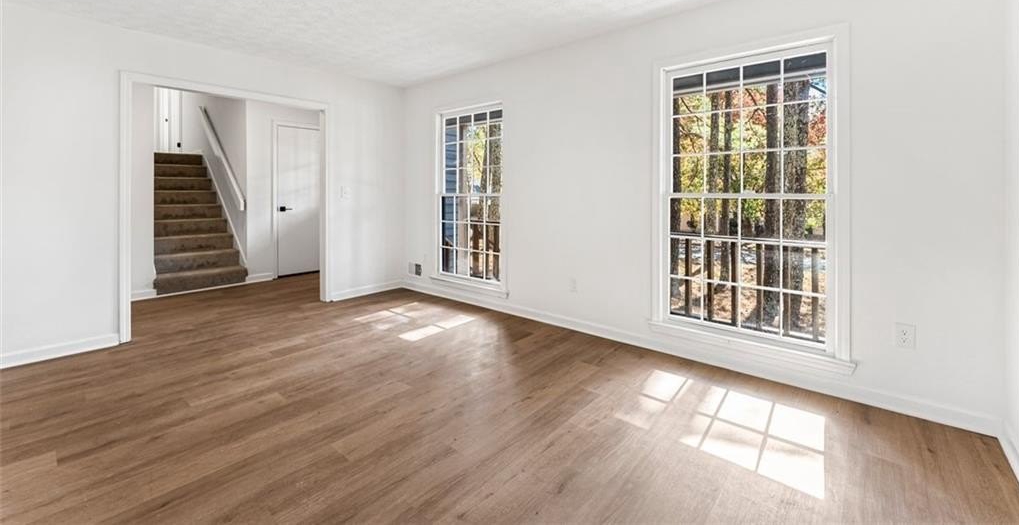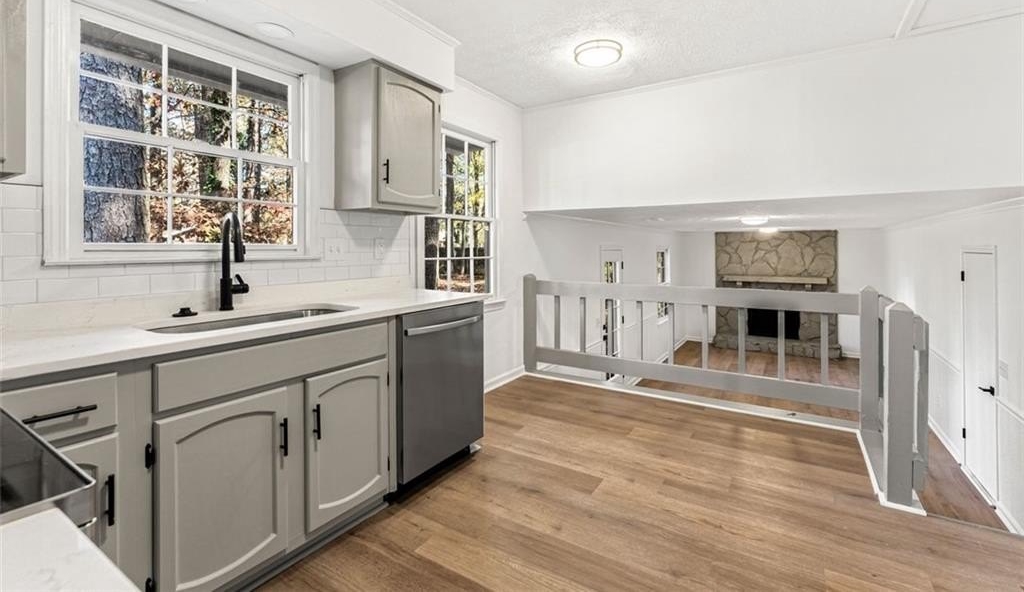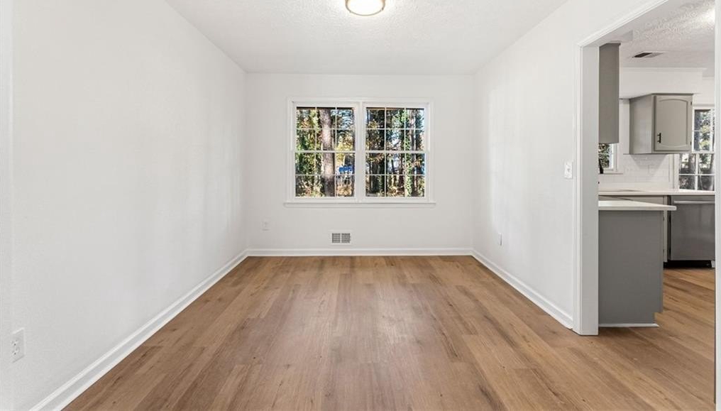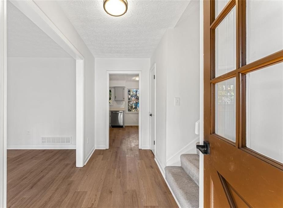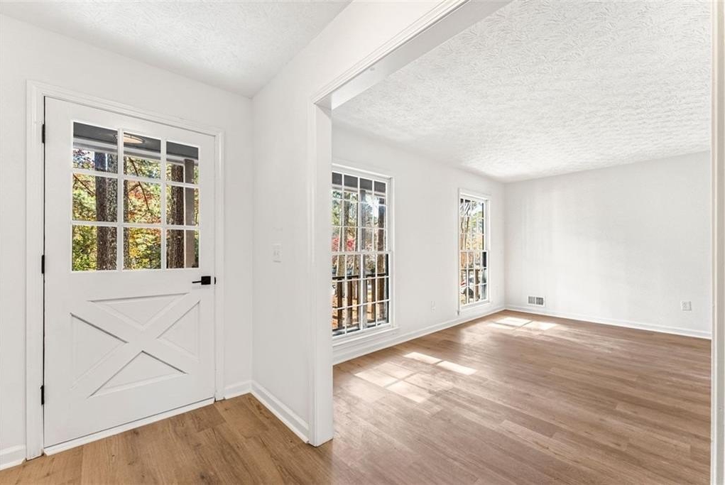 Welcome to 444 Wellington Way, a beautifully renovated home tucked among mature Georgia pines and offering a rare blend of modern updates, natural serenity, and everyday convenience. From the moment you arrive, the peaceful wooded setting and fresh exterior make this home stand out from anything else on the market. Step inside to a bright, airy interior where new flooring, fresh paint, and natural light that create a warm, inviting atmosphere. The spacious living areas flow perfectly for both everyday living and entertaining. The fully updated kitchen is a true centerpiece featuring sleek stainless steel appliances, quartz style countertops, refreshed cabinetry, modern hardware, and a clean subway tile backsplash. With large windows framing the wooded views, this space feels both stylish and serene. The open concept layout, oversized windows, and freshly renovated finishes continue throughout the home, offering a move in ready experience. Outside, the deep wooded lot provides privacy, shade, and natural beauty perfect for relaxing, playing, or creating the outdoor living space of your dreams. Whether you’re sipping coffee on the front porch or planning backyard gatherings, this home delivers the peaceful atmosphere. Located in a quiet, established Jonesboro community, this property offers easy access to shopping, dining, schools, and major highways, while still feeling like a retreat.
