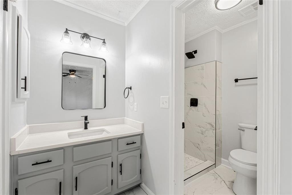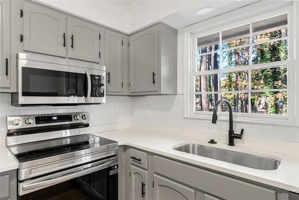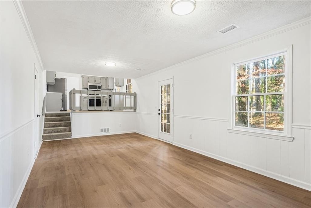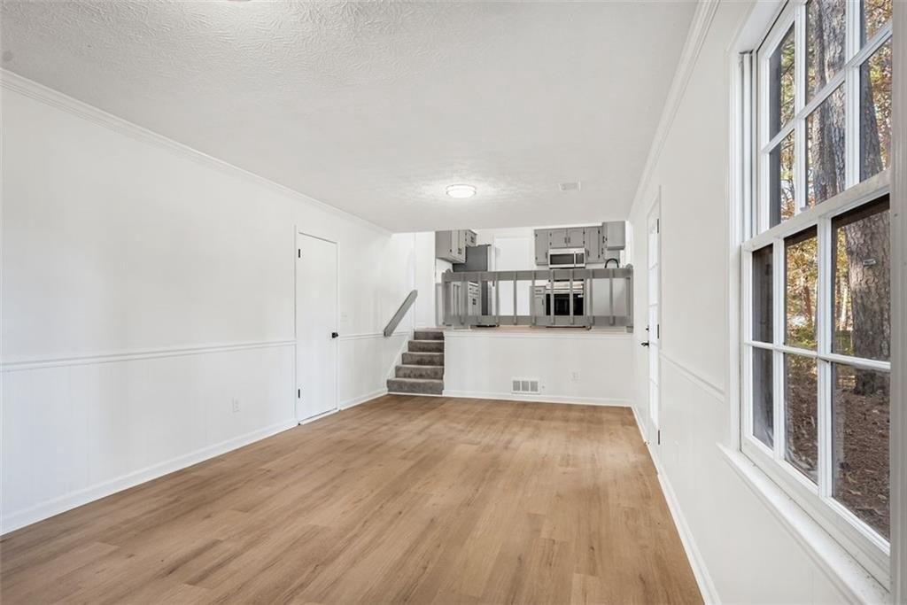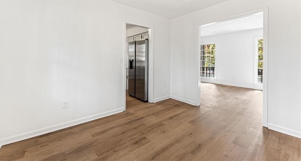Welcome to 444 Wellington Way, a beautifully renovated home tucked among mature Georgia pines and offering a rare blend of modern updates, natural serenity, and everyday convenience. From the moment you arrive, the peaceful wooded setting and fresh exterior make this home stand out from anything else on the market. Step inside to a bright, airy interior where new flooring, fresh paint, and natural light that create a warm, inviting atmosphere. The spacious living areas flow perfectly for both everyday living and entertaining. The fully updated kitchen is a true centerpiece featuring sleek stainless steel appliances, quartz style countertops, refreshed cabinetry, modern hardware, and a clean subway tile backsplash. With large windows framing the wooded views, this space feels both stylish and serene. The open concept layout, oversized windows, and freshly renovated finishes continue throughout the home, offering a move in ready experience. Outside, the deep wooded lot provides privacy, shade, and natural beauty perfect for relaxing, playing, or creating the outdoor living space of your dreams. Whether you’re sipping coffee on the front porch or planning backyard gatherings, this home delivers the peaceful atmosphere. Located in a quiet, established Jonesboro community, this property offers easy access to shopping, dining, schools, and major highways, while still feeling like a retreat.