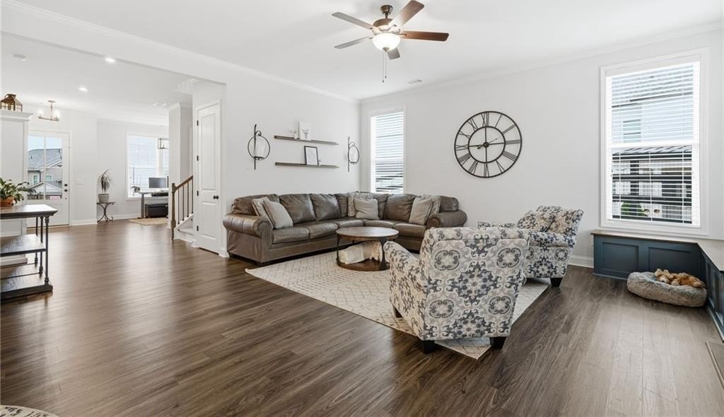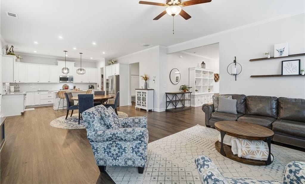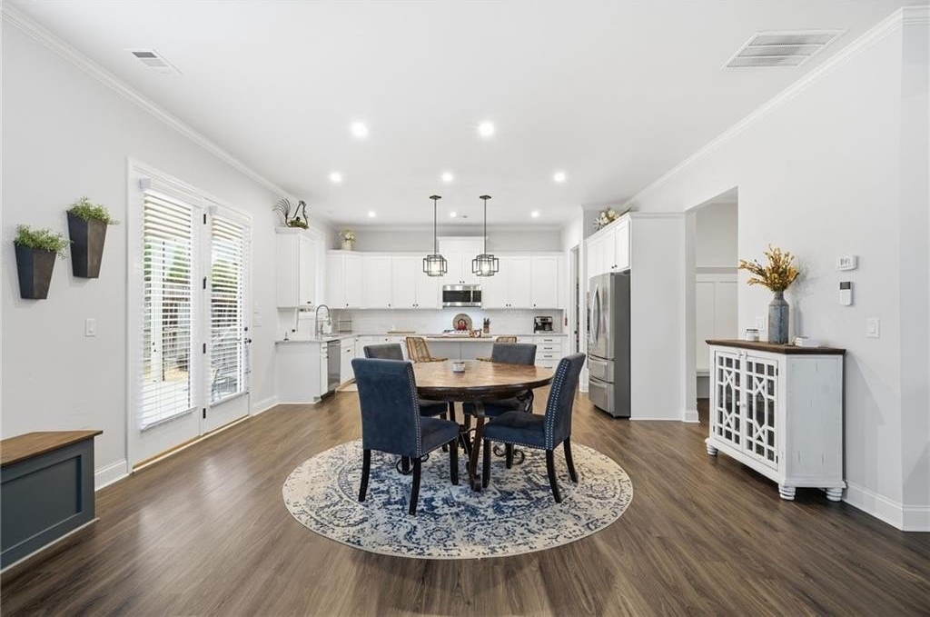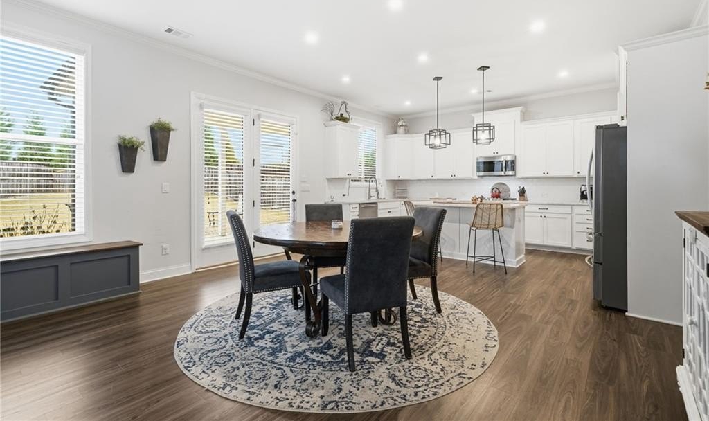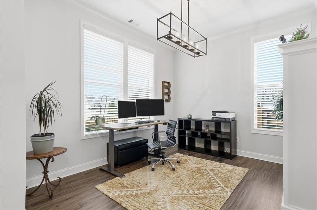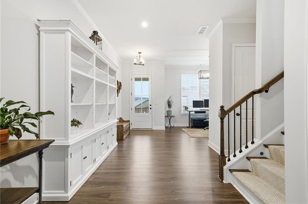 Step inside this inviting 4-bedroom, 3-bath home and experience a space designed for both style and everyday ease. The expansive foyer greets you with a sense of openness the moment you walk in, with a versatile front room that works beautifully as a traditional dining space or—as it’s currently being used—a private home office tucked neatly at the entry.