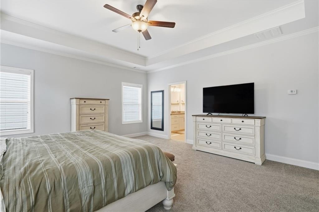 Upstairs, brand new carpet throughout the home gives each bedroom a fresh, clean feel. The primary suite features a double vanity and a spacious shower, creating a peaceful retreat. Additional bedrooms are generously sized, including one with its own en-suite bathroom for added comfort and privacy.