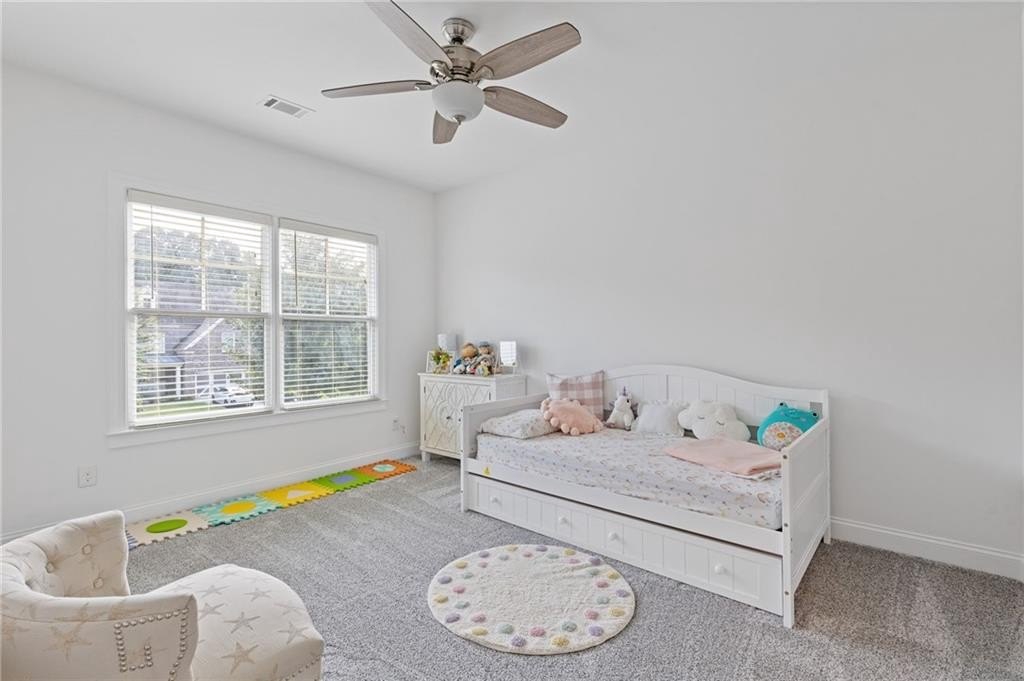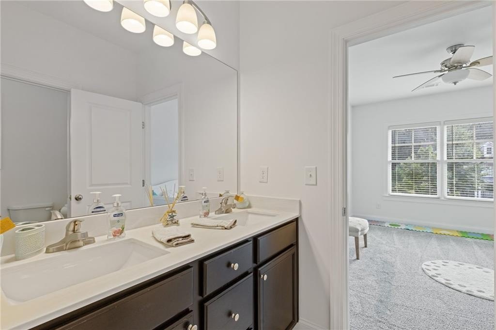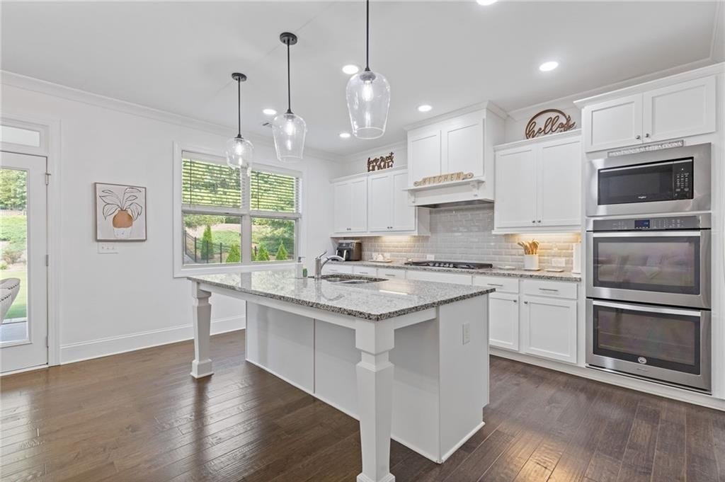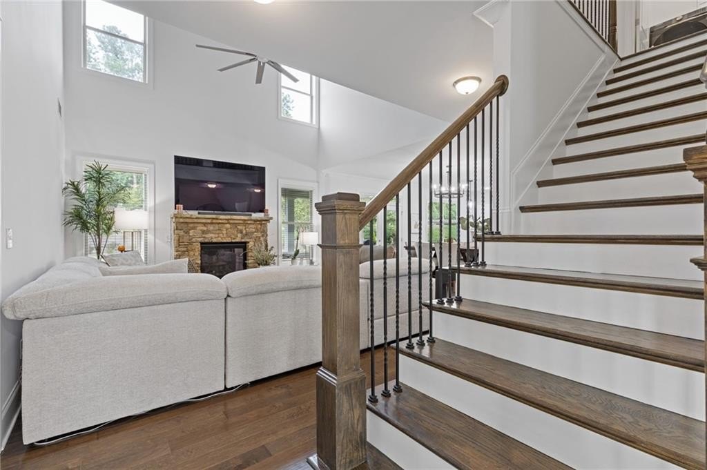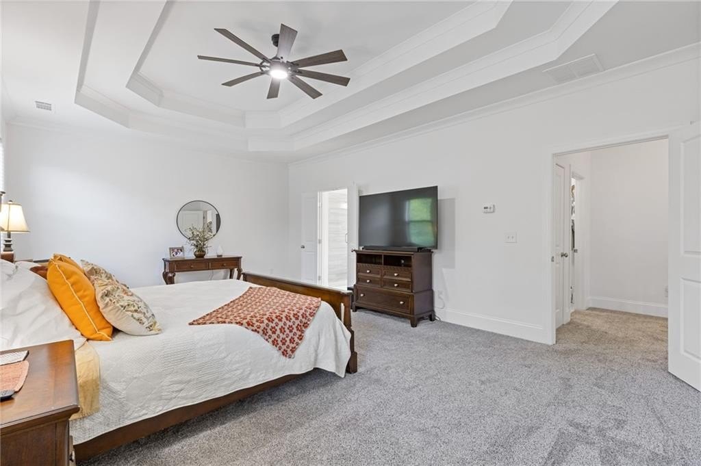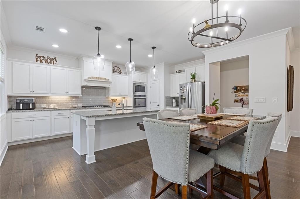 Stunning 5 BR / 4 BA, 3,400 sq ft Craftsman in a beautiful Sugar Hill HOA community. This impeccably maintained home features fresh interior paint, new carpets, new light fixtures, a two-story family room, chef’s kitchen with granite countertops, huge island, stainless steel appliances, and all appliances convey with the sale. Enjoy gleaming hardwoods, upgraded trim with coffered ceilings and wainscoting in formal dinning room, a guest suite on the main level, and a cozy stone fireplace. Step outside to a large, flat, fenced backyard perfect to build your dream pool, with a covered patio for year-round relaxation and a brand new wrought iron fence installed less than a year ago. The oversized master suite offers double trey ceilings, spa-like bath with tile to the ceiling, frameless shower, soaking tub, and an enormous walk-in closet. Spacious secondary bedrooms include walk-ins and a convenient Jack-and-Jill bath. Located in an upscale, private neighborhood with high standard. This rare gem won’t last!