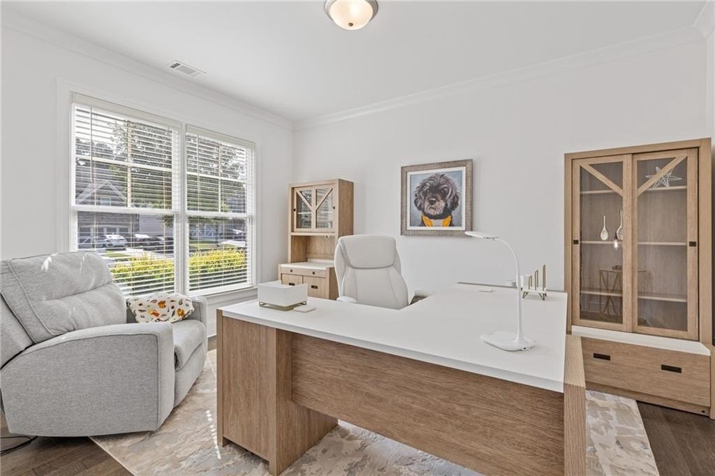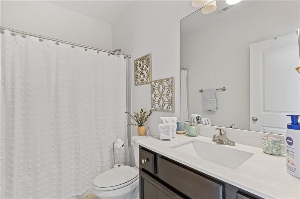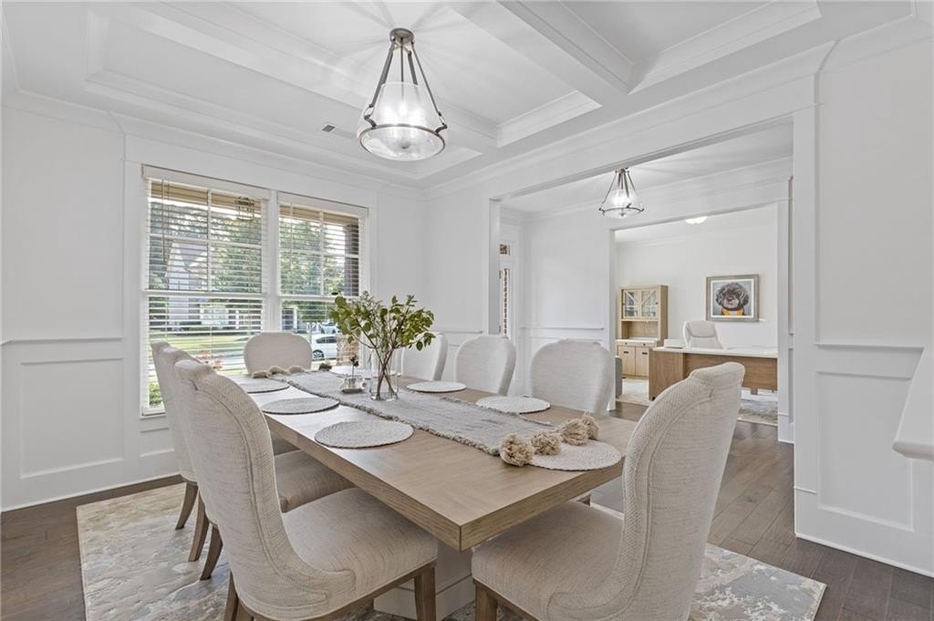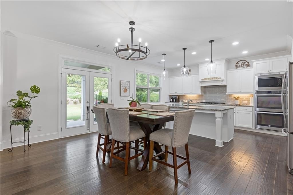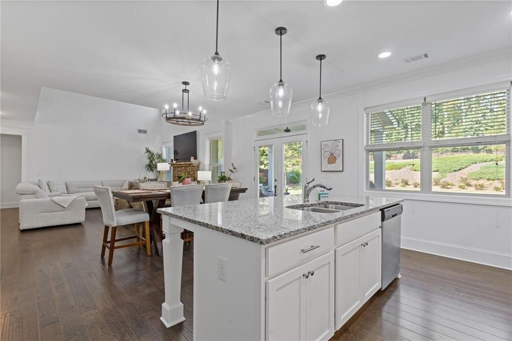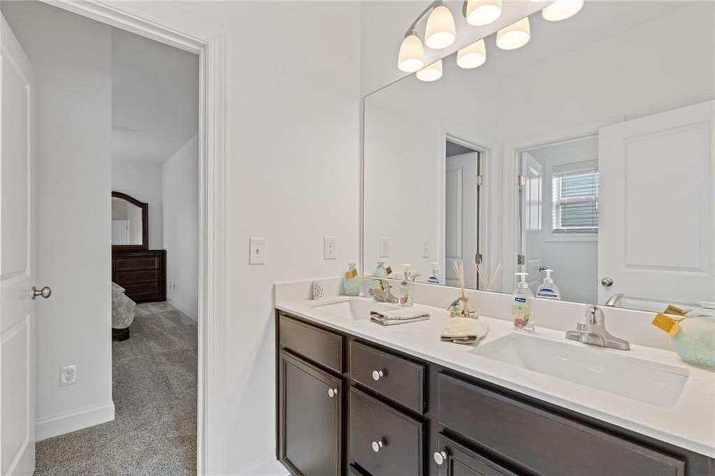 Stunning 5 BR / 4 BA, 3,400 sq ft Craftsman in a beautiful Sugar Hill HOA community. This impeccably maintained home features fresh interior paint, new carpets, new light fixtures, a two-story family room, chef’s kitchen with granite countertops, huge island, stainless steel appliances, and all appliances convey with the sale. Enjoy gleaming hardwoods, upgraded trim with coffered ceilings and wainscoting in formal dinning room, a guest suite on the main level, and a cozy stone fireplace. Step outside to a large, flat, fenced backyard perfect to build your dream pool, with a covered patio for year-round relaxation and a brand new wrought iron fence installed less than a year ago. The oversized master suite offers double trey ceilings, spa-like bath with tile to the ceiling, frameless shower, soaking tub, and an enormous walk-in closet. Spacious secondary bedrooms include walk-ins and a convenient Jack-and-Jill bath. Located in an upscale, private neighborhood with high standard. This rare gem won’t last!