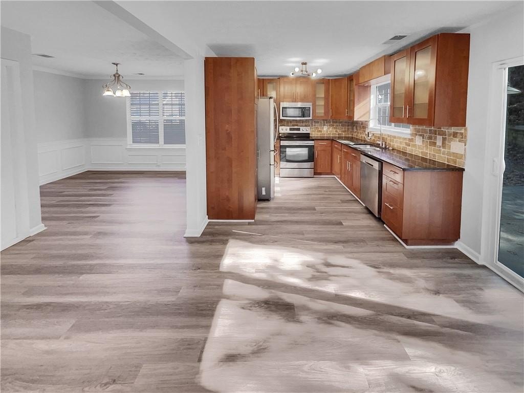 Whether you're preparing everyday meals or hosting gatherings, this kitchen offers both style and functionality. A separate dining room provides additional space for