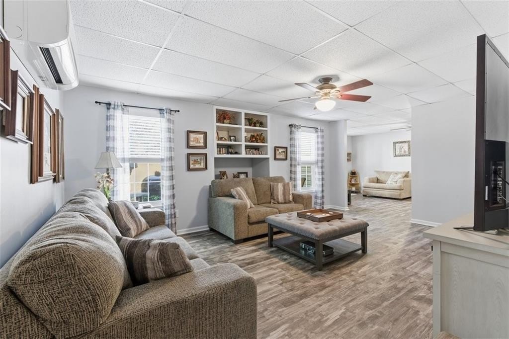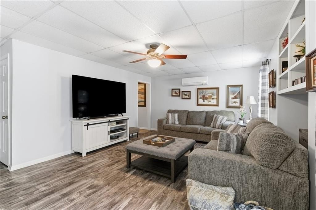 The partially finished basement offers a spacious bonus room, an additional finished room, and a large unfinished area ideal for storage or a home gym.
