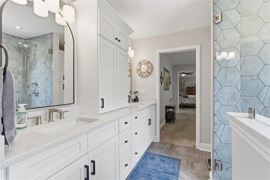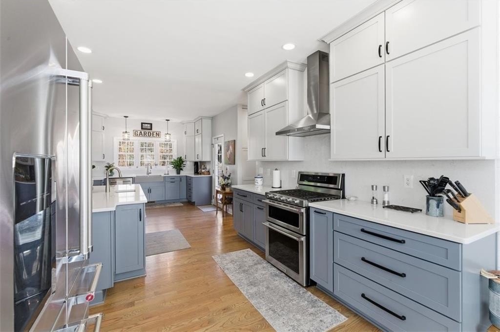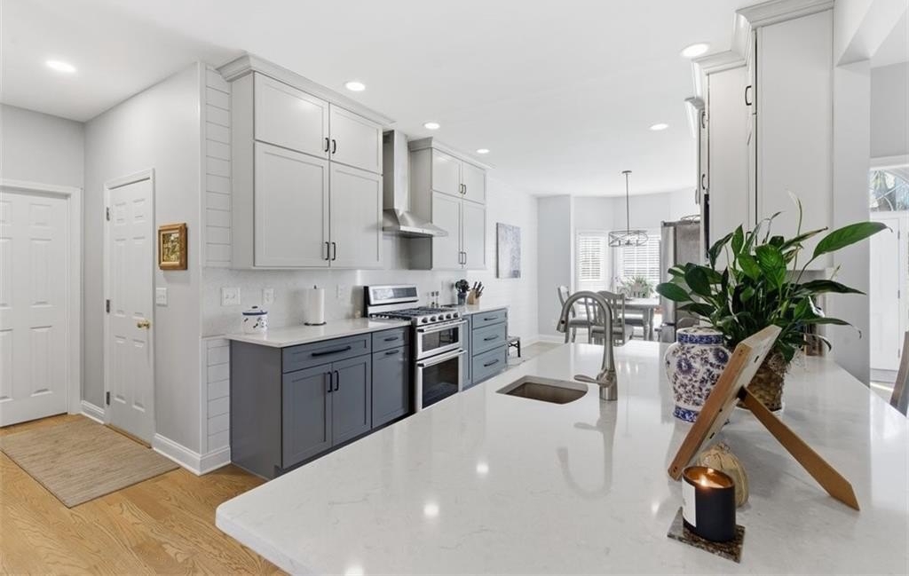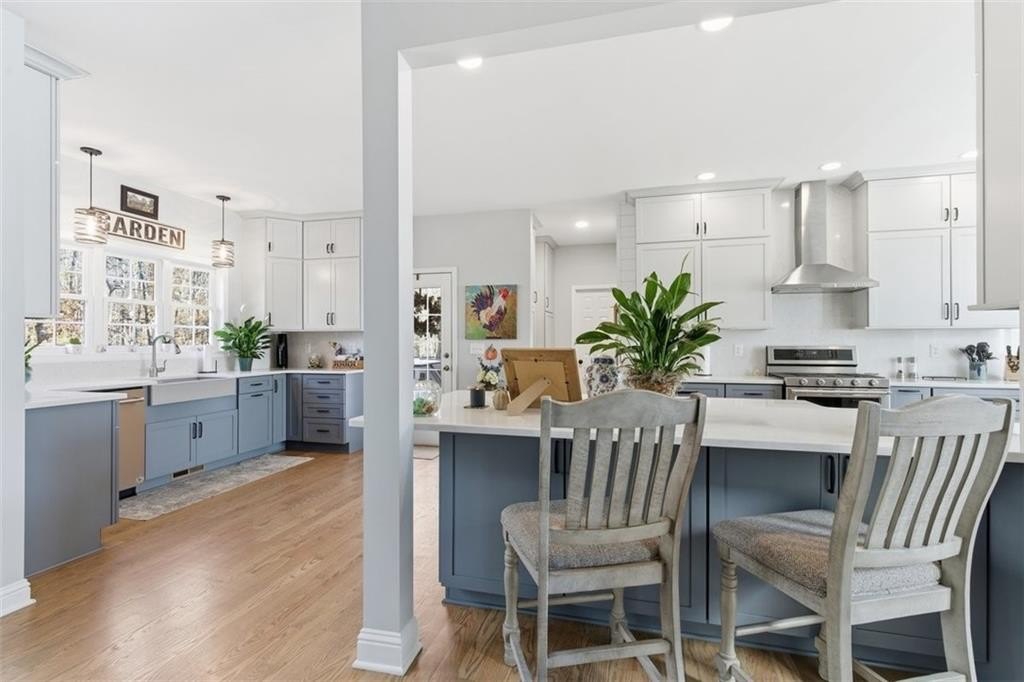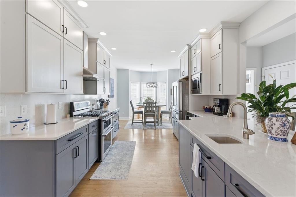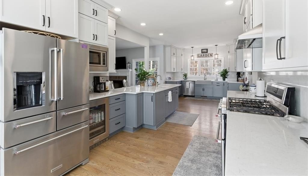 The chef’s kitchen, fully remodeled in 2024, is a true highlight. It features elegant quartz countertops, new stainless-steel appliances, under-cabinet lighting, a wine fridge, a pantry, a farmhouse sink, stylish new light fixtures, and a convenient island that opens seamlessly to the family room—ideal for entertaining.