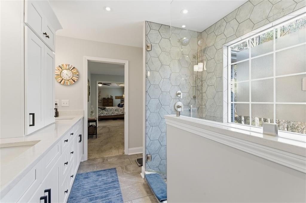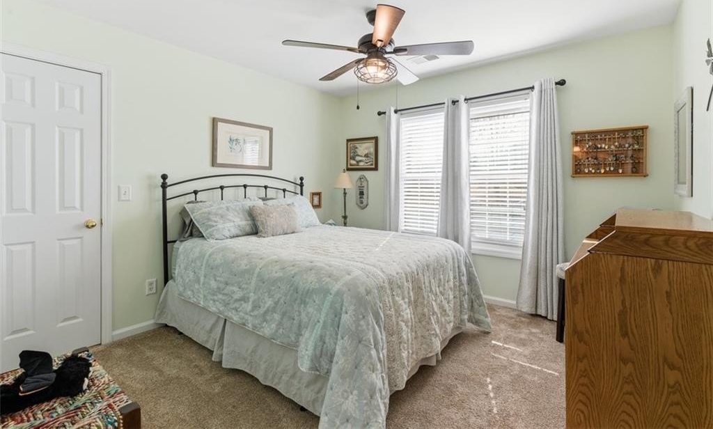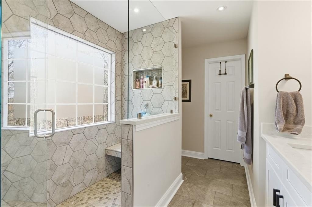 All windows were replaced in 2024, flooding the home with natural light while improving energy efficiency and comfort. Upstairs, the spacious primary suite includes a cozy sitting area and a beautifully updated en suite bath (2024) featuring dual vanities and a large walk-in shower. The secondary bathroom was also tastefully updated in 2024.