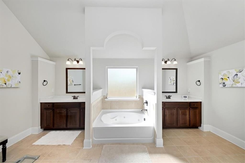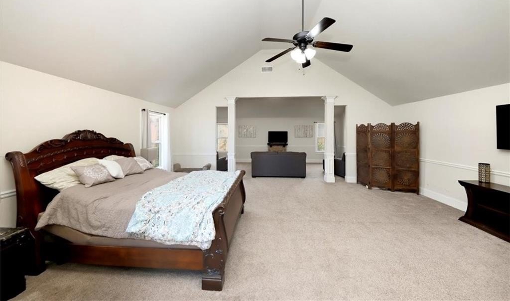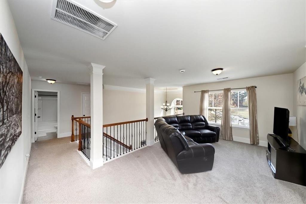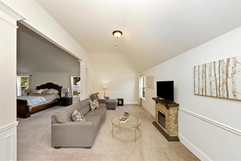 The expansive primary suite feels like a personal sanctuary, complete with a private sitting area and a spa-inspired bath featuring dual vanities, a whirlpool tub, and a separate walk-in shower. The chef’s kitchen offers stone countertops, warm stained cabinetry, and a generous breakfast bar opening to the fireside family room—ideal for casual gatherings or relaxed evenings at home. Multiple living and flex spaces, including a formal dining room, great room, loft, fitness area, game room, bonus rooms, and a dedicated wine cellar, provide endless possibilities to tailor the home to your lifestyle.