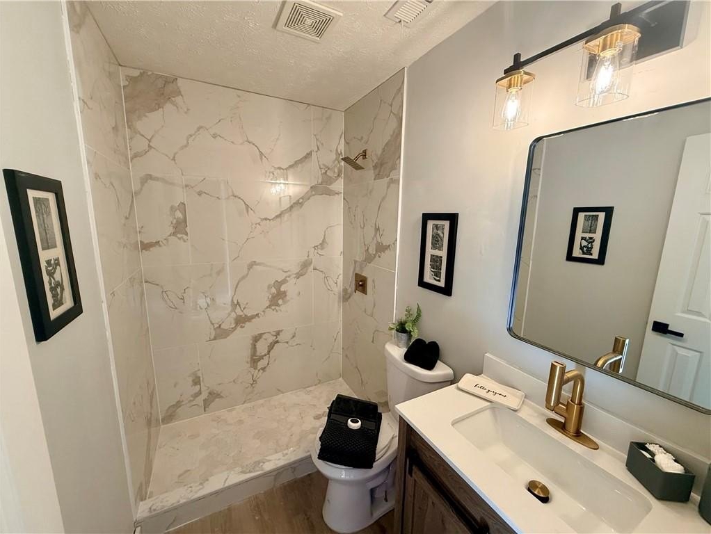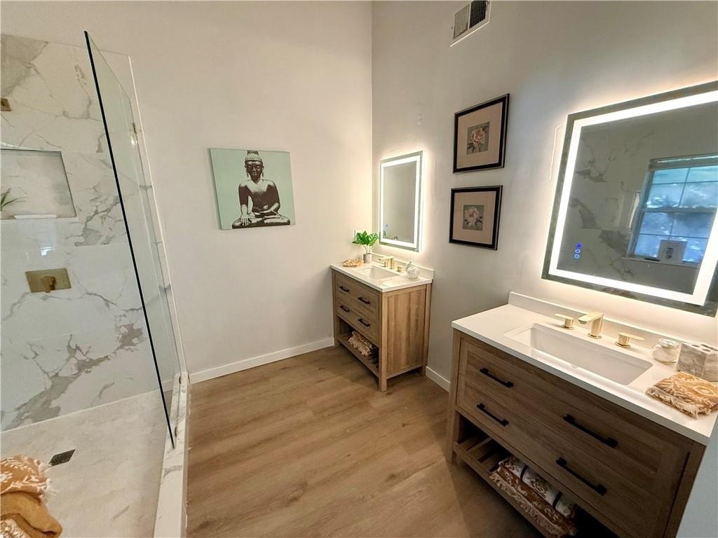 But that's not all - a separate staircase leads to a huge bedroom oasis, complete with an updated master bathroom that's a spa-like retreat. Soak in the freestanding tub or indulge in the separate rainfall shower, a true masterclass in luxury. Fully updated showers throughout the home ensure a refreshing experience.