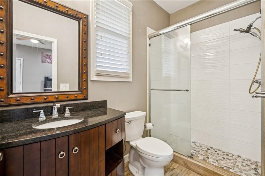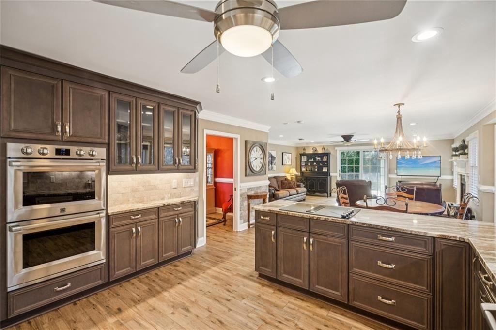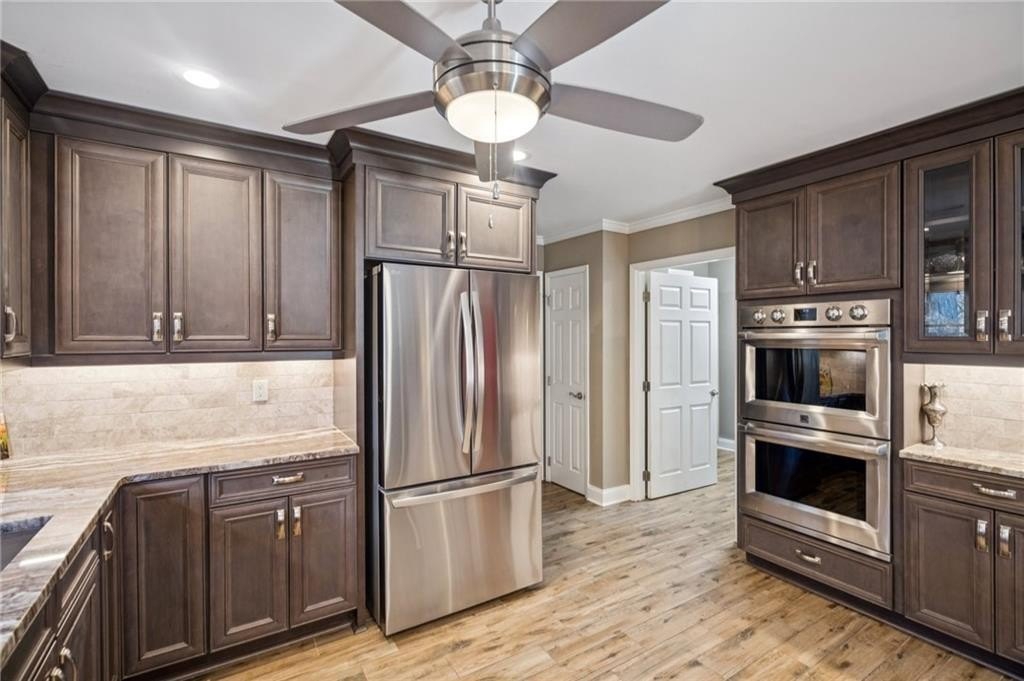 The upgraded kitchen is a showpiece, featuring custom maple cabinetry, marble countertops, limestone backsplash, and a full suite of stainless appliances. Every bathroom has been thoughtfully modernized with granite surfaces, tile surrounds, and upscale fixtures. A 2018 down-to-the-studs renovation means major systems and finishes are updated, giving you peace of mind and a truly move-in-ready home.