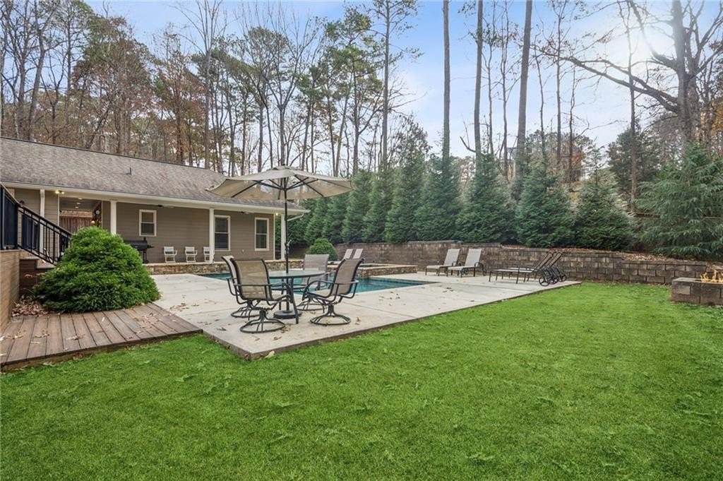 Discover your own private retreat at the end of a quiet cul-de-sac in Suwanee, within the award-winning Peachtree Ridge school cluster. Fully renovated and designed for effortless one-level living, this home blends everyday comfort with resort-style luxury.