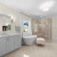 The formal dining room connects to the spacious kitchen, which features quartz countertops, floor-to-ceiling cabinetry, a large island for entertaining, and a butler's pantry with a walk-in pantry. The eat-in kitchen offers a cozy spot for breakfast with a view of the backyard.The owner has also added a reverse osmosis water filter at the kitchen sink.