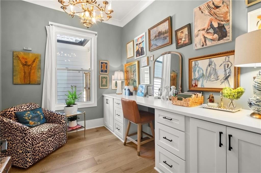 There is a quiet, tucked-away office the provides the perfect space for productivity, or a gaming room. A main-level bedroom offers privacy for guest or children.