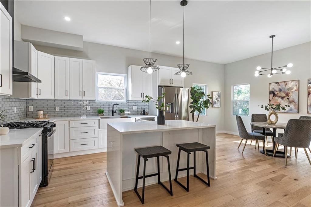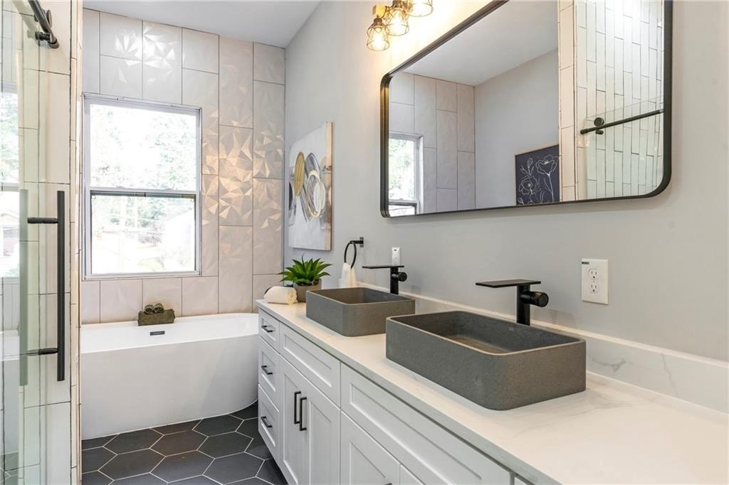 Stunning modern contemporary style new construction home with 3,700 sq ft of living space just minutes from the Atlanta BeltLine and the lively Lee + White district! This spacious home offers 5 bedrooms, 4 full baths, an open-concept main level with hardwood floors, designer lighting, and a gorgeous chef’s kitchen featuring quartz countertops, custom cabinetry, and a large waterfall edge island. At the top of the stairs, a cozy sitting area loft creates the perfect reading nook or workspace. The generous primary suite includes a large walk-in closet with a full organization system and a luxurious spa-style bathroom with a frameless glass shower, rainfall and handheld showerheads, a freestanding soaking tub, black hex tile floors, dual concrete vessel sinks, and modern matte-black fixtures. The flexible floorplan includes two main-level bedrooms, PLUS a full finished basement with private entrance and full bath—ideal for guests, office, studio, multi-generational living, or even rental potential (buyer to verify)! Outdoor living shines with an oversized covered front porch, EV wired attached garage, and a large fully fenced backyard perfect for entertaining, pets, or play. Located in a thriving corridor with major developments including Murphy Crossing, the West End Mall revitalization, and the newly announced Atrium Healthcare acquisition of The Met site. Close to breweries, dining, food halls, entertainment, and parks. A rare blend of space, style, luxury finishes, and location—move-in ready and a must-see.