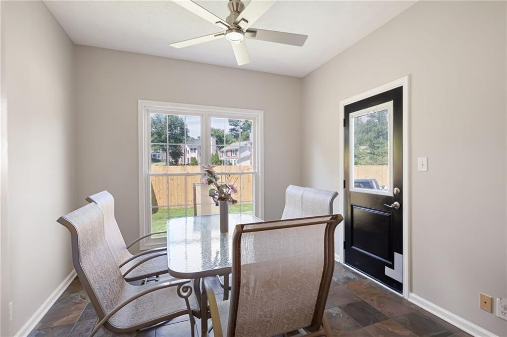 Get ready to fall in love with this 4 bedroom, 2.5 bath traditional home! Lush landscaping and great curb appeal welcome you into a two-story foyer. A versatile flex room and formal dining room set the stage, while a bright sunroom offers the perfect spot for enjoying backyard views. The kitchen opens seamlessly to the fireside family room and features white cabinetry, an island, and ample storage space. The main level also includes an updated half bath and access to the private backyard with a spacious patio and brand-new fence, the perfect space for entertaining or relaxing outdoors! Upstairs, you'll find generously sized secondary bedrooms, a shared full bath, and a convenient laundry room. The oversized primary suite is a true retreat with trey ceilings, a separate fireside sitting area, large walk-in closet, and an ensuite bath complete with his/her sinks, soaking tub, and separate shower. Updates feature LeafGuard gutters backed by a lifetime transferable warranty, along with Empire laminate wood floors that come with a limited maintenance guarantee. This home is walkable to top-rated schools and just minutes from Avalon, Halcyon, Downtown Alpharetta, Johns Creek, Webb Bridge Park, Ocee Park, Big Creek Greenway, and GA-400. With nearby shopping, dining, trails, and entertainment, this location truly has it all. Don't miss out on this fantastic opportunity!!! **Reduced Costs Option: With Preferred Lender, receive up to $3500 credit toward closing costs OR 1-year interest rate buydown!