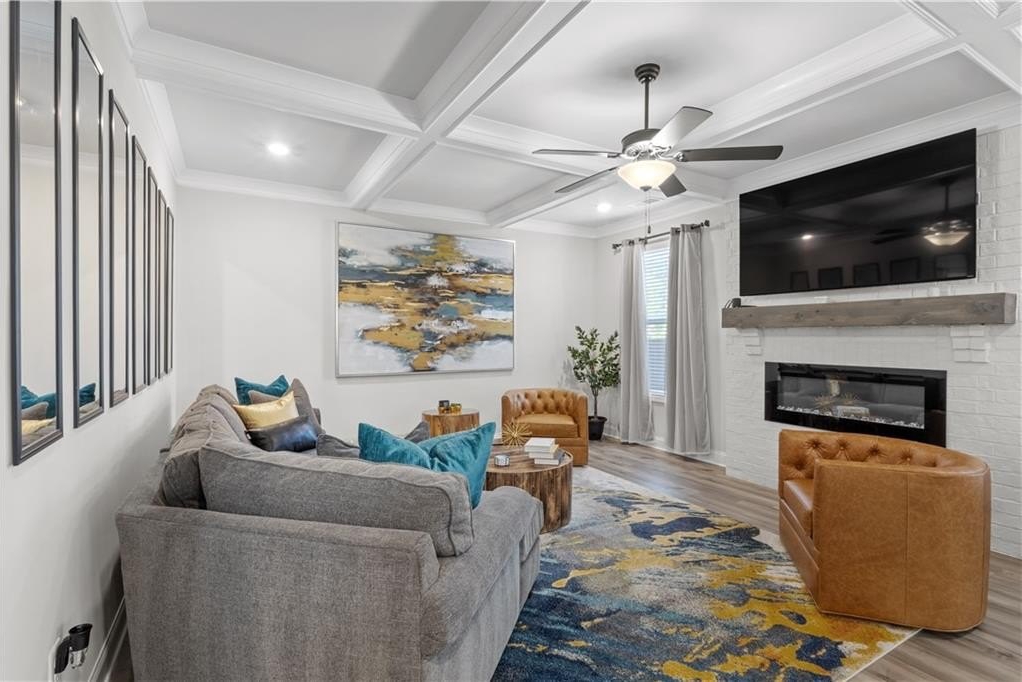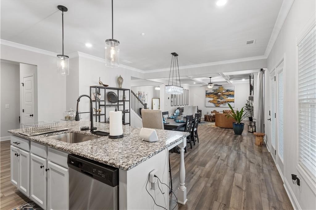 Beautiful, well-maintained Camelot floor plan in Canterbury Reserve! This spacious 5BR/4BA home features a main-level guest suite w/ full bath, flex room for dining/office, and an open great room with coffered ceiling and electric allusion fireplace w/ shiplap. Upgraded kitchen w/ painted cabinets, gourmet appliances & tile backsplash. Relax on the covered, screened porch w/ gas fireplace. Upstairs: HUGE loft, oversized primary suite w/ double tray ceiling, luxury bath w/ 7' shower, 3 secondary BRs, 2 baths & laundry. Pending short-sale approval. Sold AS-IS.