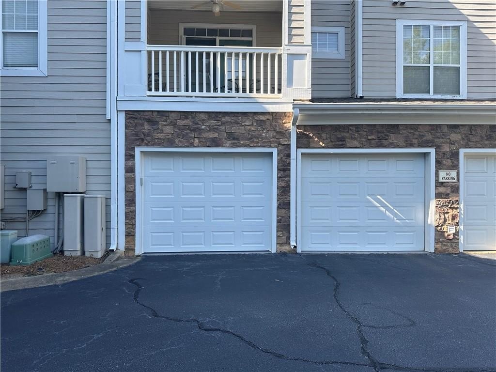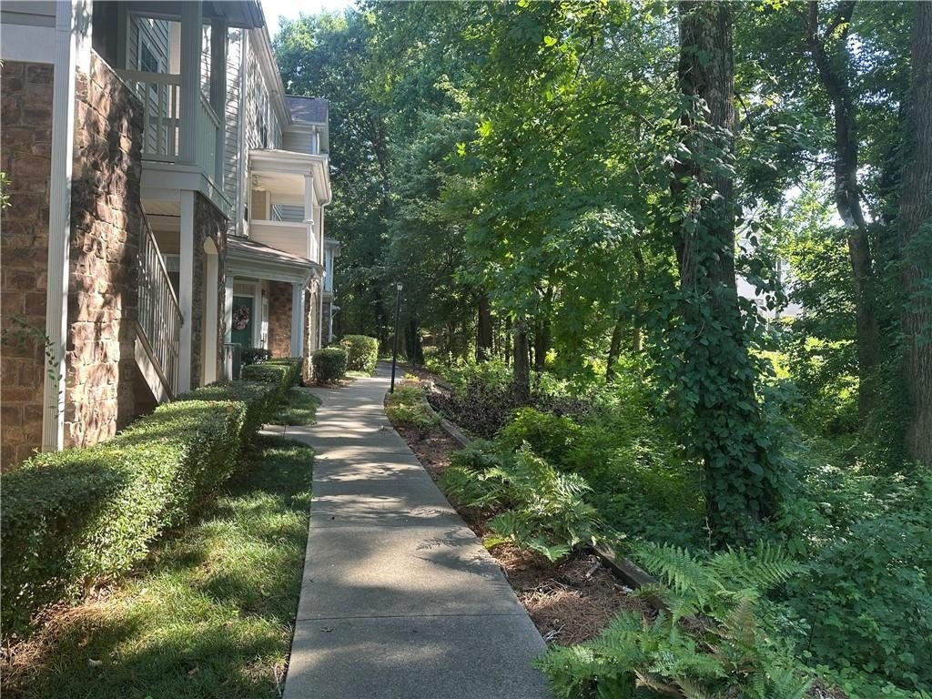 Surprisingly large upper floor, 3-bedroom, 3 full bathroom condo in Gated community. A delightful two-way fireplace separates two large multi-functional rooms (could be your typical living/dining or living/office or whatever you like), one with built-in storage. A large shaded patio is accessible from both the living spaces and is suitable for multiple outdoor areas. The kitchen and laundry feature new appliances* and a clear view into the living space. Each bedroom has its own bathroom, making it ideal for any family or roommate configuration. The primary suite features two walk-in closets, a separate tub and shower, and a double vanity. The secondary bedroom features an updated shower and a walk-in closet. The third room features a standard tub/shower combination for those who require it. As for utilities, everything is electric, which means lower energy bills for you. Water and trash are included. A two-car garage with plenty of storage makes privacy and daily living a breeze. And, if you prefer public transportation, the bus is conveniently located right outside the gate. Target, Walmart, Aldi, and Kroger are all within walking distance. The community amenities are unmatched and include walking trails, pet amenities, a car wash, a swimming pool, a clubhouse with community rooms available for reservation, a gym, a full kitchen, and a billiards room, all included in the HOA fees. Pets under 25lb with a deposit and rent. No smoking inside. *Dishwasher, Washer, and Dryer