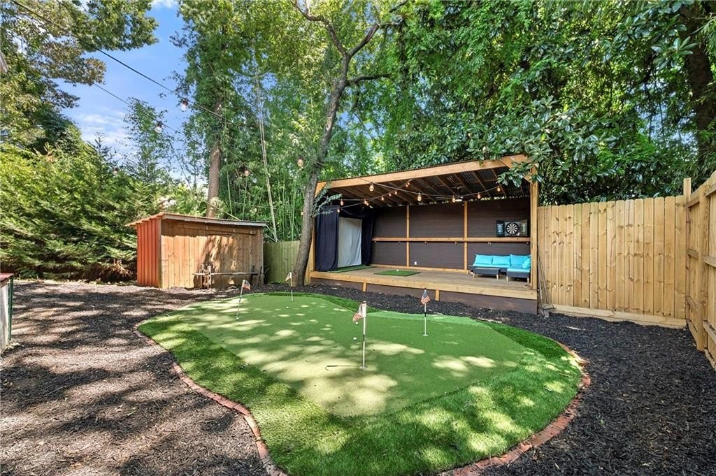 Outside, do not miss the two distinct backyard retreats: an upper terrace with a hot tub and fire pit for relaxed evenings under the stars, and a lower yard featuring a turf putting green and golf simulator for endless recreation.