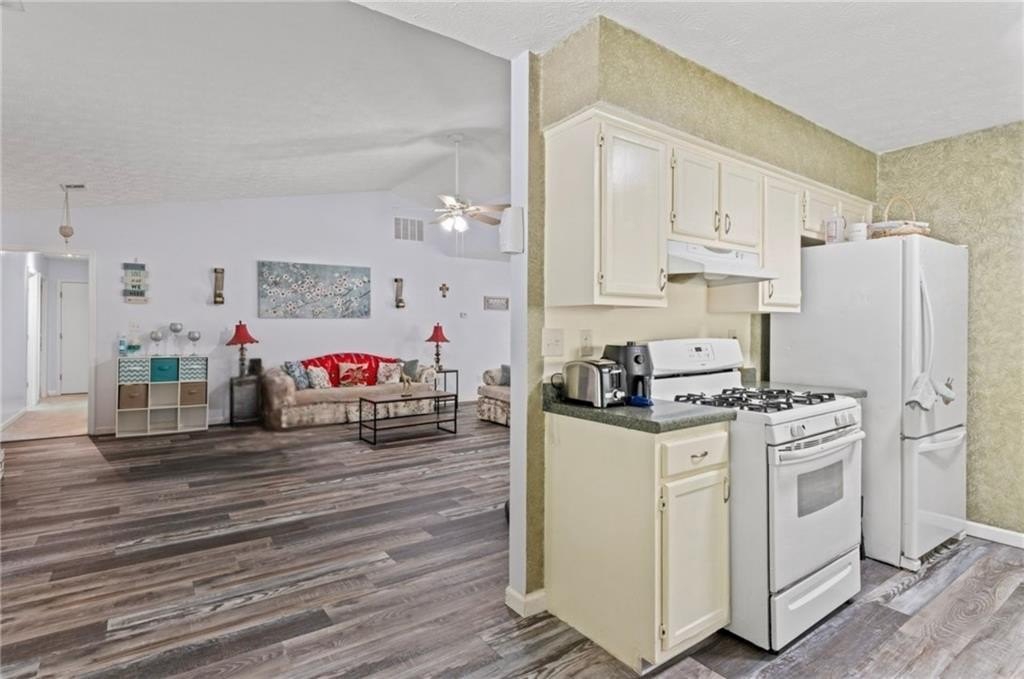 Move-in ready all brick ranch featuring an updated kitchen, a brand-new roof, NEW vinyl flooring and completely updated bathrooms with all new fixtures and finishes. Set on nearly half an acre, this well kept all-brick ranch-style home includes a private, tree-lined, fenced backyard. With 3 bedrooms and 2 bathrooms, the primary suite is conveniently located on the main level. The inviting family room, complete with a cozy fireplace, seamlessly connects to a formal dining room, making it perfect for entertaining. The dream kitchen is equipped with newly-stained cabinets, solid surface countertops, and a walk-in pantry. The spacious primary suite includes two walk-in closets and a newly renovated bathroom, creating a tranquil retreat. There are two additional guest bedrooms that share a fully renovated bathroom. Step outside to the covered deck, where you can enjoy the seclusion of the fenced backyard, ideal for outdoor gatherings, complete with a fire pit for cozy fall evenings. Conveniently located near Lake Spivey, this home offers easy access to the interstate, shopping, and dining options. With no HOA fees or restrictions, this property won't last long. Don't miss this wonderful opportunity to make it your own!