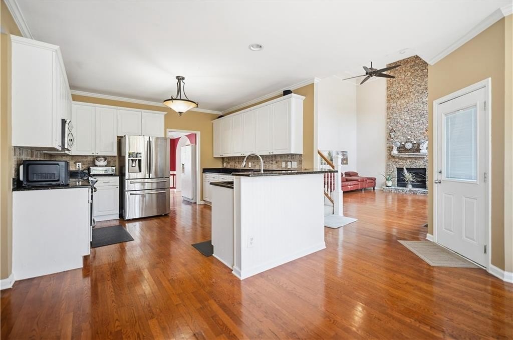 Beautiful brick front traditional 4BR/3.5BA home in one of Suwanee’s most desirable lake communities! This spacious property is perfectly situated on a scenic lot with private lake access and a personal dock, offering a peaceful retreat with plenty of room for living and entertaining. The main level features a two-story foyer, formal sitting room, and separate dining room ideal for gatherings. The two-story living room boasts large windows that flood the space with natural light and offer serene lake views. The large kitchen includes an eat-in breakfast area, ample workspace, and access to the deck. A half bath and laundry room are conveniently located on the main level. Upstairs, the oversized primary suite features vaulted ceilings, a large walk-in closet, and a spa-like bathroom with a separate tub, standing shower, and double vanities. The upper level also includes three additional bedrooms, each with large closets, that share a full bathroom providing plenty of space and comfort for family or guests. The finished basement adds approximately 1,000 sq ft of additional living space, featuring a full bathroom, recreation room, and media room perfect for a home theater, gym, or play area. Outside, enjoy lakefront living with your own private dock, ideal for fishing, kayaking, or relaxing by the water. The property also includes a two-car garage for convenience and additional storage. Excellent location close to top-rated schools, parks, restaurants, and shopping, with easy access to major highways. A rare opportunity to own a lakefront home in one of Suwanee’s most sought-after neighborhoods!