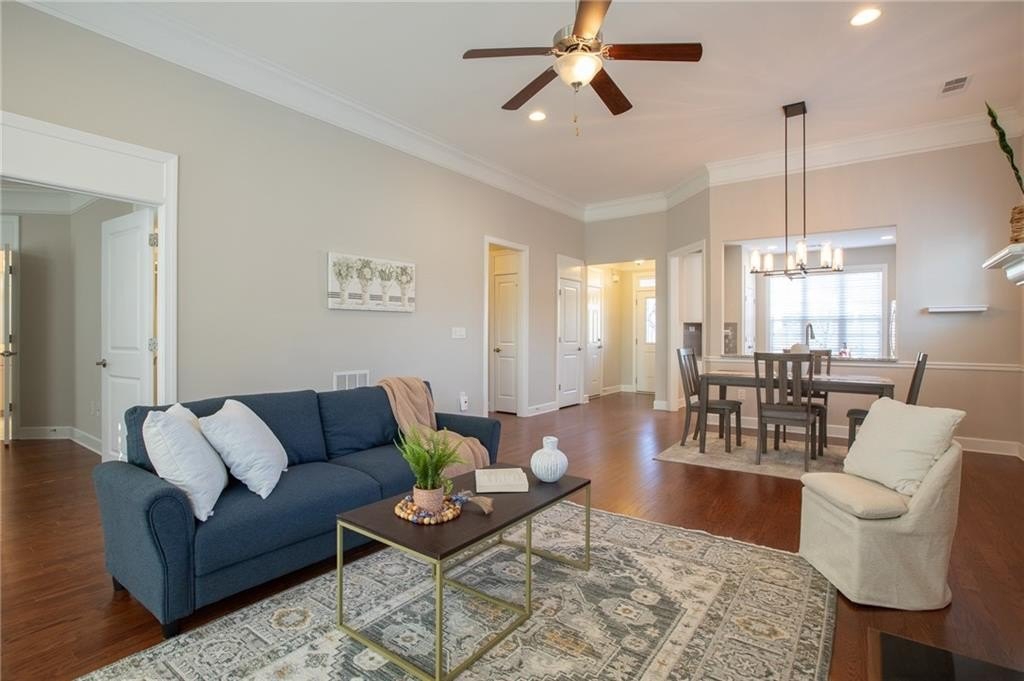 Welcome home to this much loved ASHFORD floor plan. Open the beveled glass door to hardwood floors throughout the house. The Kitchen featuring white cabinets, has a Electric range, with Gas Connection available, Refrigerator, Microwave, Granite countertops, and Desk. Open concept Dining. Great Room with cozy fireplace, open to the Sunroom for additional living space. Primary Bedroom with two custom closet systems, Dual Vanities, Shower. Guest bedroom, Guest Bath, Laundry Room, Washer and Dryer complete the main level. Enjoy your morning coffee or an afternoon beverage on your covered porch with electric shades, overlooking the beautifully landscaped back yard. Built in Grill Area. Cresswind at Lake Lanier is designed for individuals aged 55 and older, fostering a vibrant and social living environment tailored to the needs and interests of active retirees. The range of amenities and activities cater to a leisurely and socially engaging lifestyle which include a 42,000 square foot clubhouse spanning 3 levels, over 120 clubs, community theater, chorus, pickleball, tennis, walking trails, fitness center, indoor, heated pool and outdoor pool, community garden, dog park and marina on the shores of Lake Lanier. We put the ACTIVE in Active Adult Communities. I not only sell here, I LIVE here. Please ask if you would like a personal Clubhouse tour. Weissman is the preferred closing attorney. Property Taxes reflect age (70) exemption.