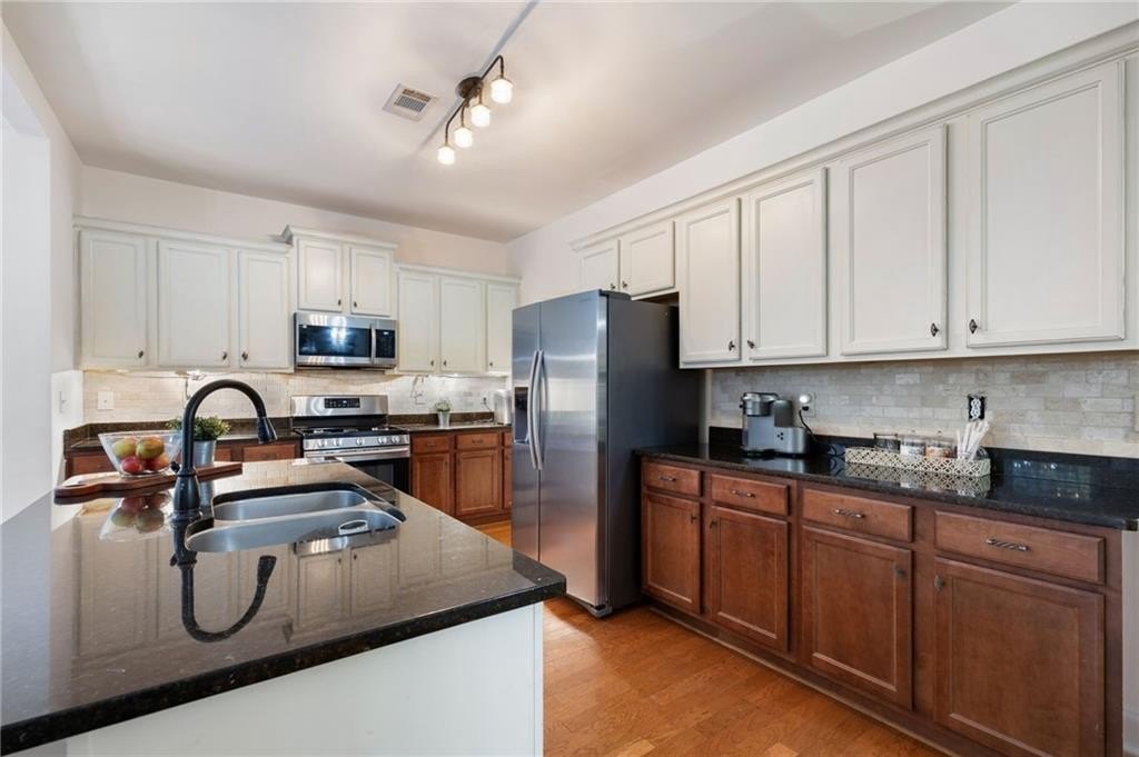 Charming Traditional • Open Layout • Resort-Style Community! Step into this inviting 4-bedroom, 2.5-bath home in the heart of Seven Hills — offering a blend of comfort, privacy, and community lifestyle. The main level welcomes you with a covered front porch. Inside, a light-filled open layout, featuring a center-island kitchen with stainless steel appliances, a tile backsplash, and an eat-in breakfast area. Adjacent to the kitchen is a family room with a white-washed brick-surround fireplace. Hardwood flooring and tasteful finishes add warmth and character. A half bathroom completes the main floor. Upstairs, the spacious primary suite includes a tray ceiling, a generous walk-in closet, and a full ensuite bath with a double vanity, a soaking tub, and a separate shower. Three additional bedrooms — one with access to a bonus/flex room — plus a full hallway bath provide room for family, guests, or a home office. Outside, enjoy a fenced backyard backing to wooded privacy and a concrete rear patio — ideal for grilling, relaxing, or entertaining. The property includes a two-car garage and ample driveway parking. Living in Seven Hills means access to resort-style amenities: clubhouse, splash pool/water park, tennis, pickleball and basketball courts, playgrounds, walking trails, and community events, all steps away. Convenience is just as strong: Grab groceries at Publix Super Market at Seven Hills Station or browse shops and services at the Shoppes at Seven Hills just minutes away. Dining options nearby include family-friendly and casual favorites like Rosa Negra Tapas & Tequila, Barn Belly Burgers and other local restaurants — ideal for easy nights out or quick take-out. Move-in ready and full of charm, this home delivers the space, setting, and lifestyle you’ve been searching for!