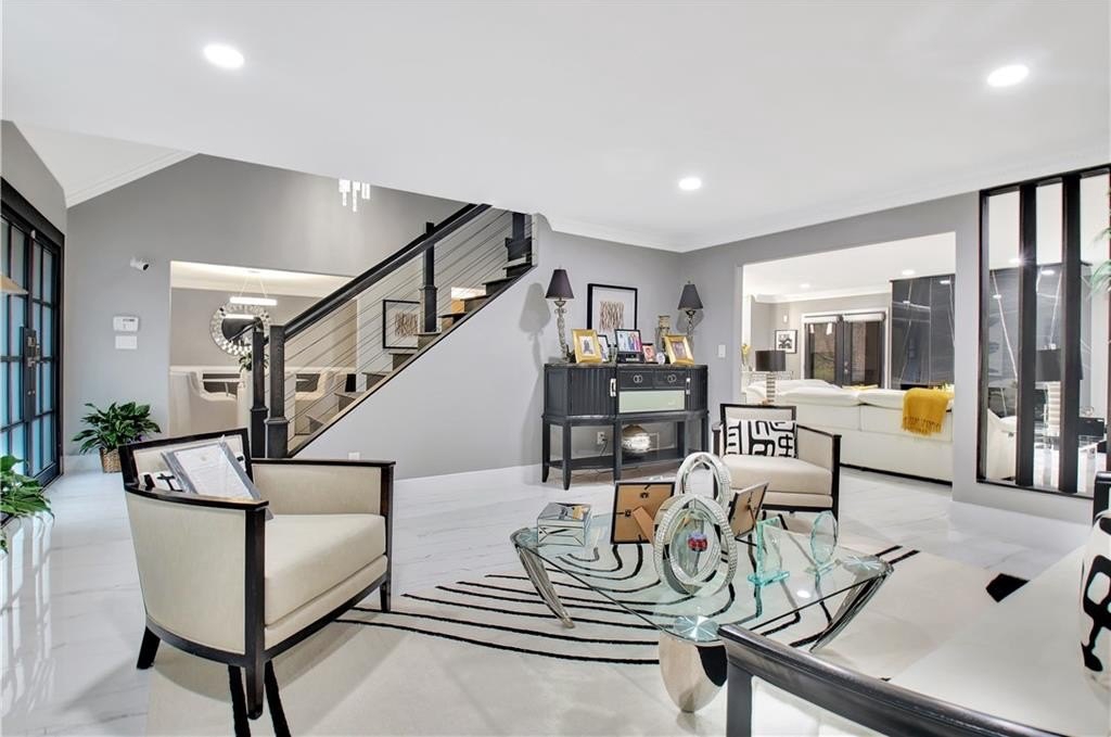Luxury, space, and sophistication converge at 370 Dix Lee On Drive. This fully renovated estate in sought-after Dix Lee On sits on 1.14 acres and offers incredible millwork, porcelain flooring, designer lighting, and premium smart-home features. The heart of the home is the chef's kitchen that showcases a Sub-Zero styled refrigerator, oversized island, standalone walk-in pantry, stainless appliances, breakfast bar, under cabinet/floor lighting, and remote shades. Completing the area is a laundry room & endless storage. The family room continues with remote shades, a built-in TV wall and a complete electric wall fireplace surround slab. Two primary owner suites-one on each level-offer flexibility and comfort. The second-level owner's retreat features a spa-inspired bath, soaking tub/shower, sitting area, and expansive custom walk-in closet. All secondary bedrooms are extremely spacious ensuites. The finished terrace level delivers versatility with two ensuite rooms, a full secondary kitchen, unique ceilings throughout, a fireplace, office, two entertainment rooms, custom walk-in closet with dressing room, laundry room and custom finishes-ideal for multigenerational comfort or luxury hosting. This is truly an extraordinary home, beautifully updated, meticulously maintained and perfect for entertaining. Located minutes from interstate, Hartsfield Jackson International Airport and Trilith Studios. This is one of the most coveted areas in North Fayette, Welcome to 370 Dix Lee On Drive!
