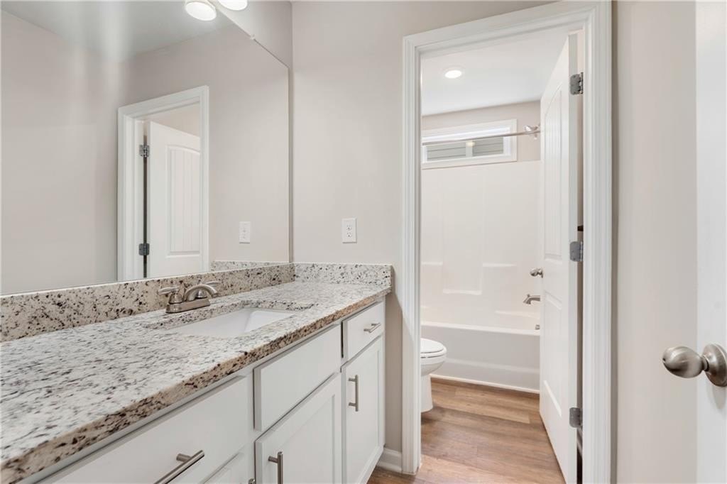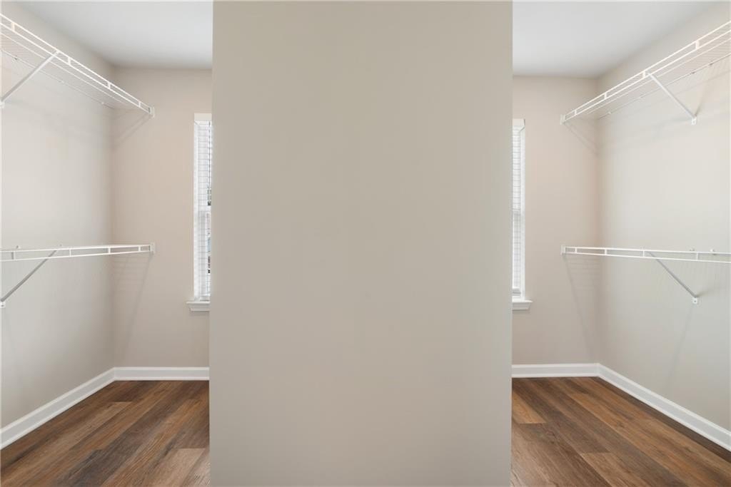 Upstairs, the master suite offers plenty of space and natural light. The highlight is the stunning master bathroom, which is generously sized and beautifully designed. It features a double vanity, soaking tub, a separate glass-enclosed shower, and a spacious walk-in closet with separate areas for him and her.