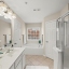 Upstairs features two true ensuite bedrooms. The primary suite offers a tray ceiling, a spacious bath with a walk-in shower and soaking tub, a private water closet, a dual vanity, and a generous walk-in closet. The secondary bedroom is oversized with an updated ensuite bath. The large upstairs laundry room adds everyday convenience.