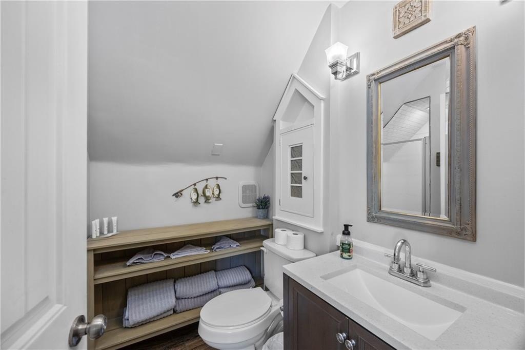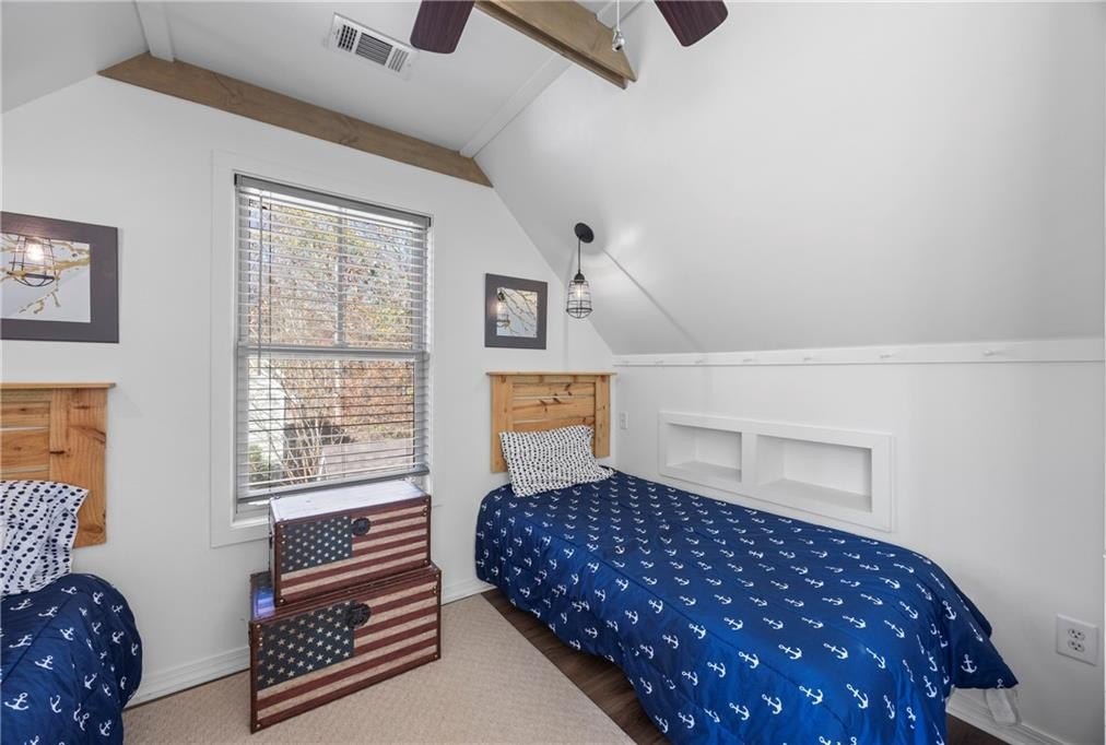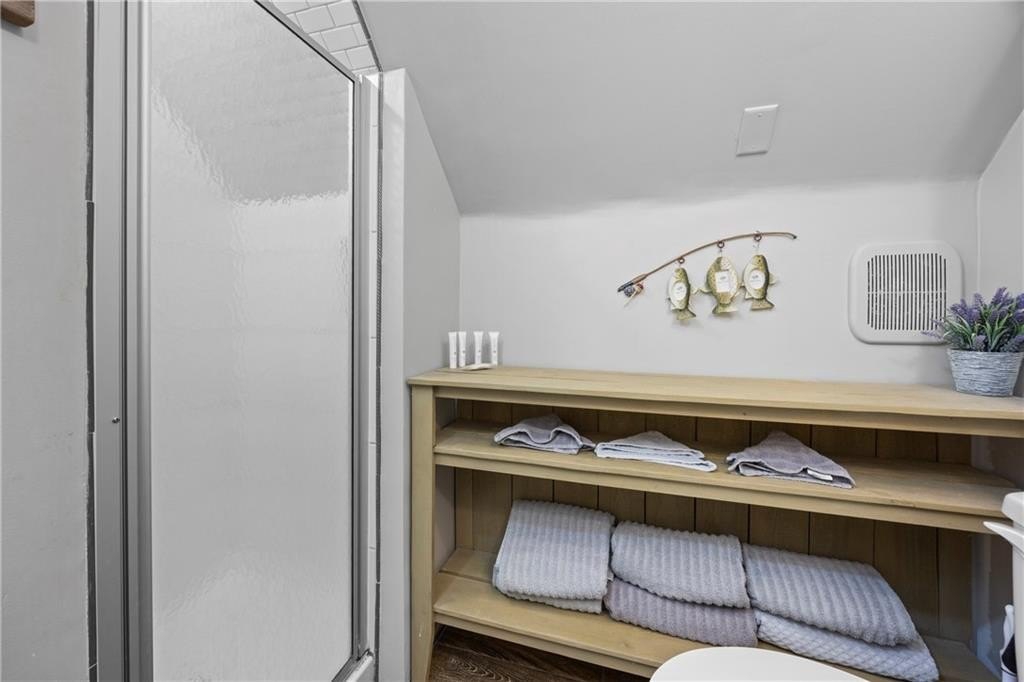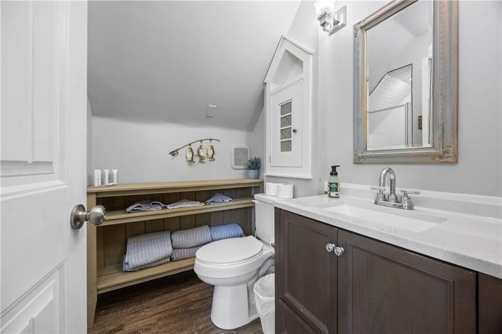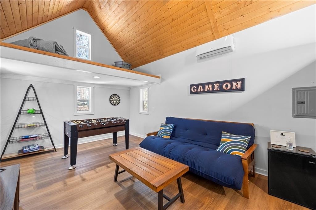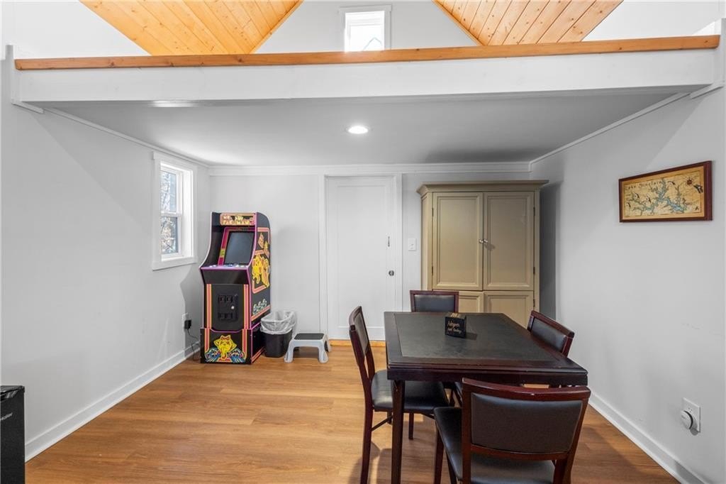 The main home features a bedroom and full bathroom (as well as a half bath) on the main level, with two additional bedrooms and another full bathroom upstairs. The home feels warm and inviting, with cozy spaces perfect for relaxing after a day on the lake. The floor plan lends itself perfect for large gatherings at the lake house! In addition to the main home, the property includes a separate guest cottage with its own bedroom and bathroom, offering a private place for visitors or rental guests. A third detached structure, currently used as a game room, provides even more flexibility and could easily be converted into another sleeping area or living space depending on your needs.