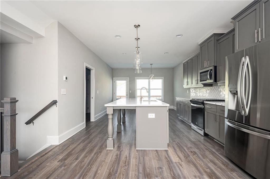 Step inside and fall in love with the open-concept living area featuring luxury LVP flooring, abundant natural light, and a chef-inspired kitchen complete with quartz countertops, stainless steel appliances, a large island, subway tile backsplash, and a cozy breakfast nook. A stylish main-level powder room provides added convenience when entertaining.