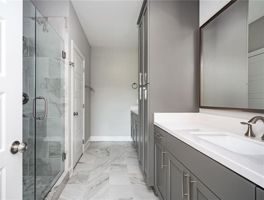 Retreat upstairs to the serene Owner’s Suite, offering a spa-like bath with dual vanities, a walk-in tiled shower, and an oversized walk-in closet. Two spacious secondary bedrooms, each with a private en-suite bath and walk-in closet, provide ideal accommodations for guests or family.