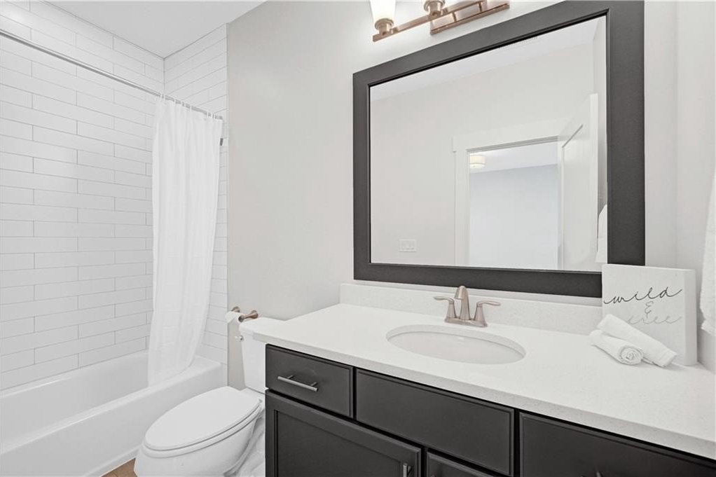 A main-level bedroom with a full bath offers ideal flexibility for guests or a dedicated home office.