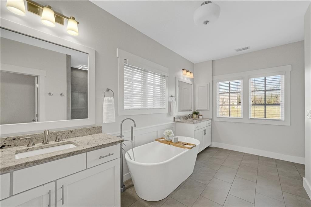 Upstairs, retreat to your luxurious owner’s suite, featuring an enormous walk-in closet equipped with a custom California Closet system and a spa-inspired bathroom with dual vanities, an oversized shower, and a freestanding soaking tub. Additional upper-level highlights include a private guest suite with a full bathroom, large sized jack-and-jill bedrooms that each have their own private sink and walk-in closet and share the wet areas of the bathroom and has an extraordinarily big storage closet, and a huge bonus/media room—perfect for movie nights, a playroom, a gym or a second office. The convenient upstairs laundry room with a sink makes everyday living effortless.