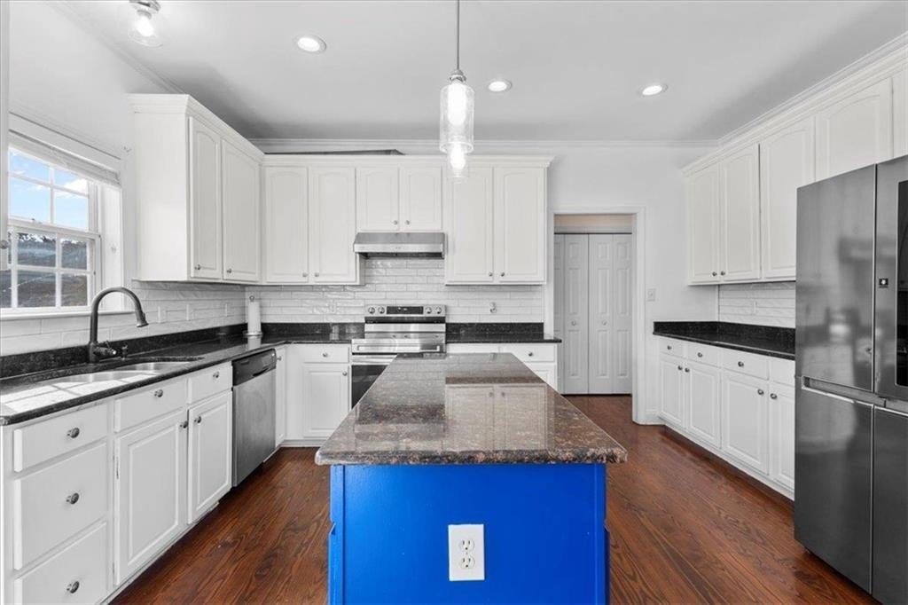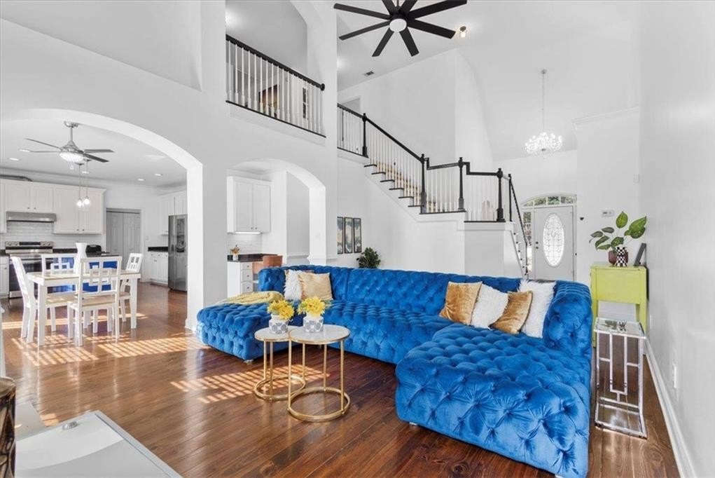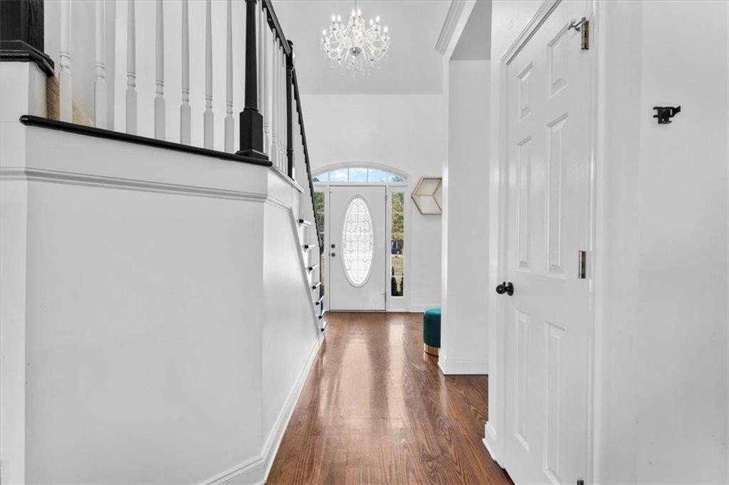 Welcome to 437 Lancelot Trail in McDonough, Georgia, your stunning brick-front, 6-bedroom, 3.5-bathroom home on an expansive 1.88-acre lot. Step inside to a grand two-story foyer and a beautiful two-story family room with a cozy fireplace. The main level features a spacious primary suite complete with a spa-like bathroom, large, tiled shower, soaking whirlpool tub, double vanity, and generous walk-in closet. The open-concept main floor is ideal for gatherings and entertaining, offering a formal living room, separate dining room, and an inviting kitchen with granite countertops, stainless steel appliances, and clear sightlines into the family room. Upstairs, you’ll find three additional bedrooms, a full bathroom, and a loft perfect for a home office or relaxation space. The finished basement provides exceptional versatility with two additional bedrooms, a playroom, entertainment area, and a kitchenette complete with its own private entry making it perfect for an in-law suite, guest space, or rental potential. Situated on a level front and backyard, this nearly 2-acre lot offers endless possibilities to create the outdoor oasis of your dreams. The back of the property extends to the lake and provides full access directly from your property line, giving you a serene natural backdrop and the perfect space for relaxation, fishing, or lakeside enjoyment. This home truly has room for everyone don’t miss this incredible opportunity!