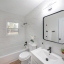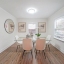 The fully remodeled bathroom showcases elegant tilework in both the shower and flooring, giving it a fresh, contemporary feel. A separate dining room provides the perfect space for gatherings, while the generous kitchen offers abundant cabinet space for storage and meal prep.