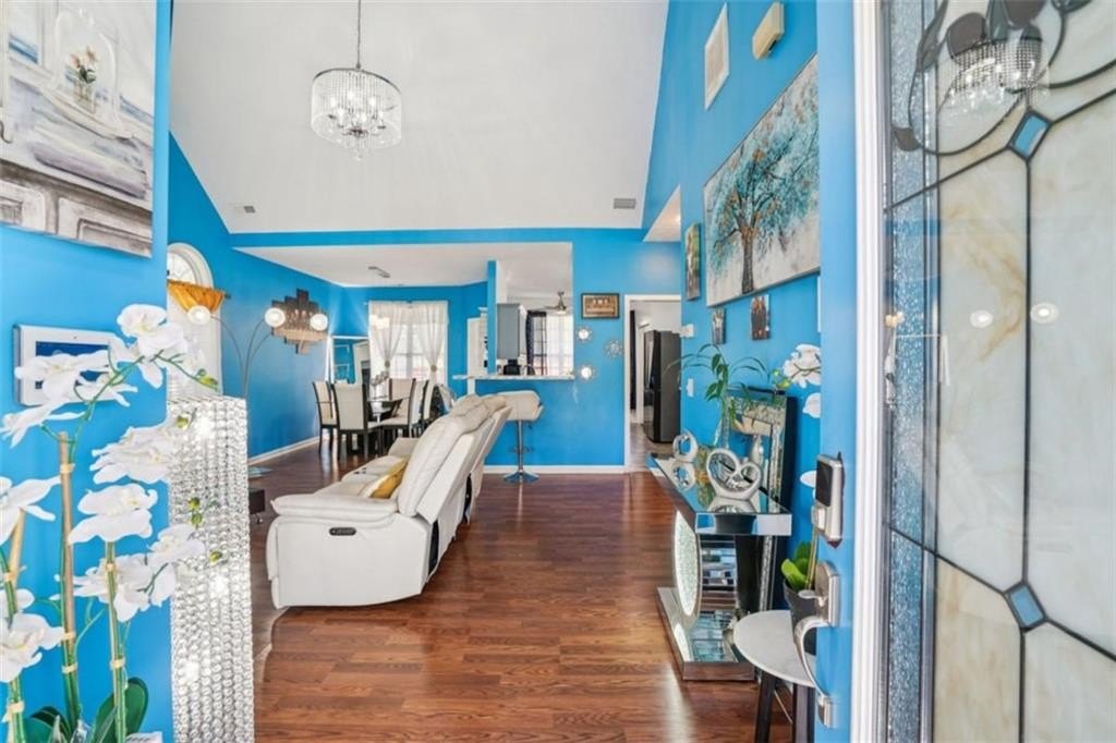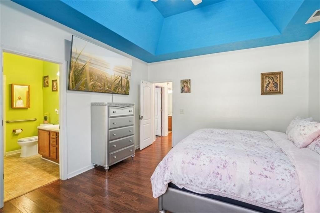 El plano de concepto abierto presenta una sala de estar con techo abovedado que fluye hacia el comedor y la cocina moderna. Disfrute de nuevos electrodomésticos inteligentes Samsung de acero inoxidable con funciones de alta gama, junto con un nuevo fregadero y triturador de acero inoxidable. La barra de desayuno da hacia la sala, y el acogedor rincón adicional ofrece una agradable vista al patio trasero, ideal para el café de la mañana o comidas informales.