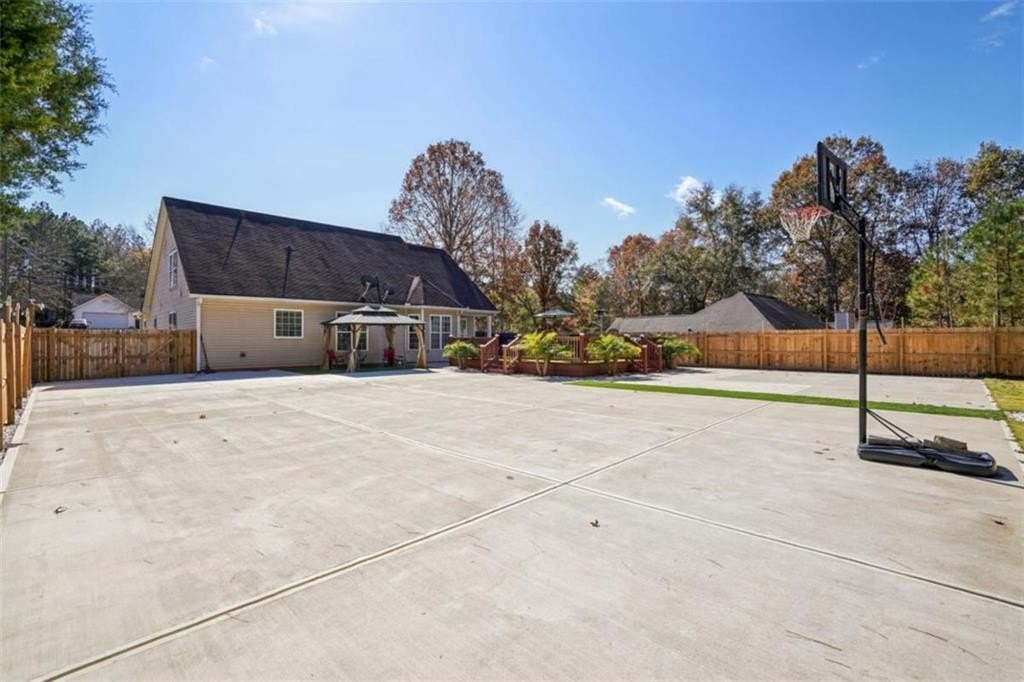Salga al patio trasero privado y completamente cercado, diseñado para relajarse y entretener. Incluye un amplio patio de concreto, una carpa tipo gazebo cubierta, una terraza elevada de madera y un espacioso césped perfecto para reuniones o diversión familiar. El sistema de riego subterráneo mantiene el patio trasero y lateral en excelentes condiciones. También hay un área designada para jugar baloncesto y espacio para más actividades al aire libre.