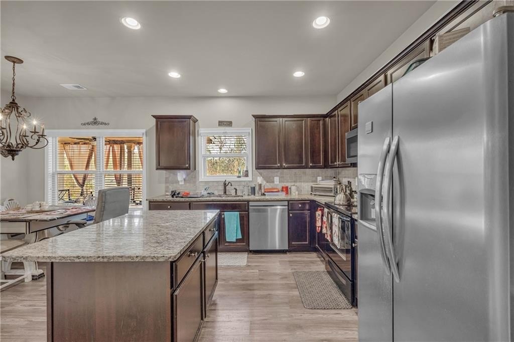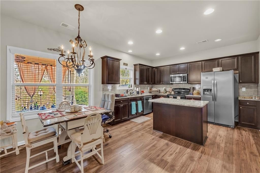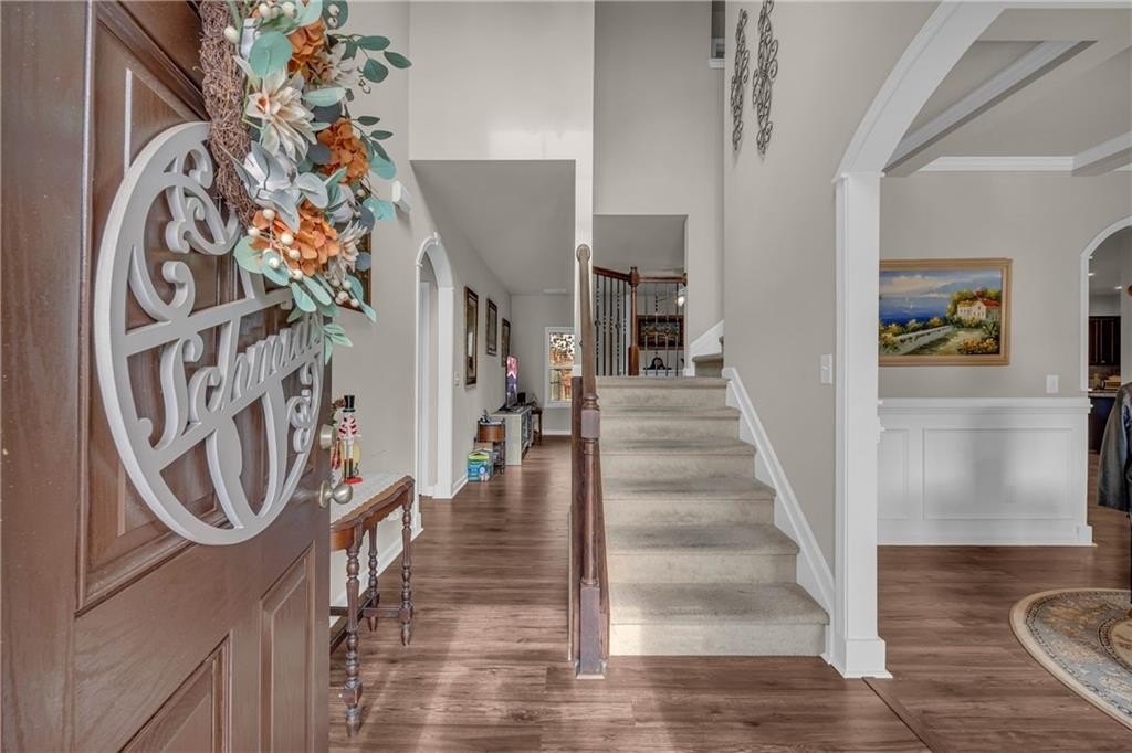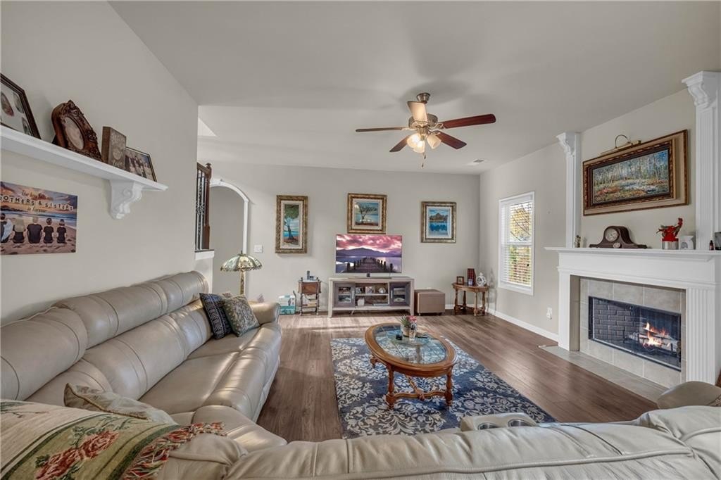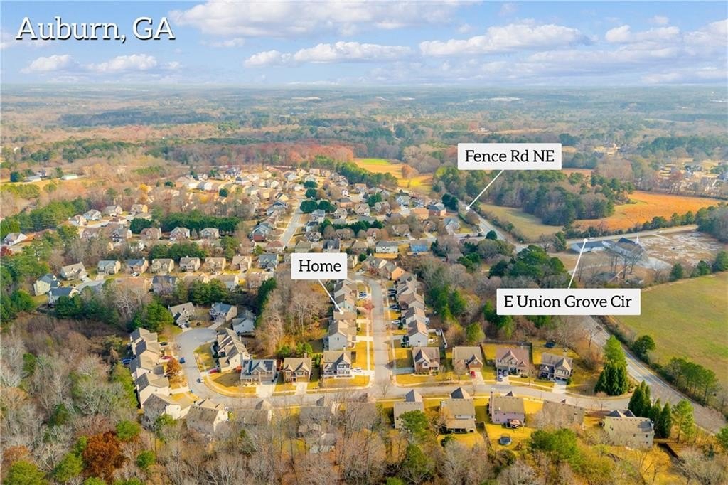 Welcome to this beautifully maintained 4-bed, 2.5-bath home in the desirable Whitfield Estates community, offering a bright open layout, stylish finishes, and a peaceful backyard that backs to green space for added privacy. The main level features a sought-after master suite on the main, along with spacious living areas enhanced by laminate hardwood flooring, coffered ceilings, decorative trim, and wrought-iron stair details. The modern kitchen is perfect for both daily living and entertaining, complete with granite countertops, a center island, ample cabinetry, and a tile backsplash that flows seamlessly into the dining and family spaces. Upstairs, you’ll find three additional bedrooms plus a generous 12×14 loft, ideal for a home office, playroom, or media area. Located in a quiet, sidewalk-lined neighborhood near Dacula/Auburn conveniences, this home offers comfort, privacy, and timeless appeal for a wide range of buyers. Let this move-in-ready home be your next perfect address.